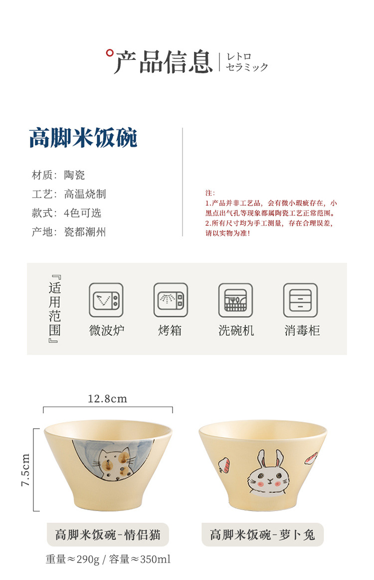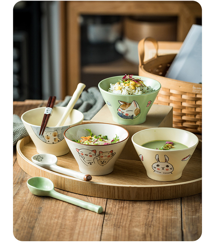 캔디 워터 딤섬 보울을위한 고양이와 개를위한 작은 그릇 수프 그릇과 토끼 가정용 세라믹 그릇을 먹기위한 만화 귀여운 높은 발 밥 그릇스토어 가기