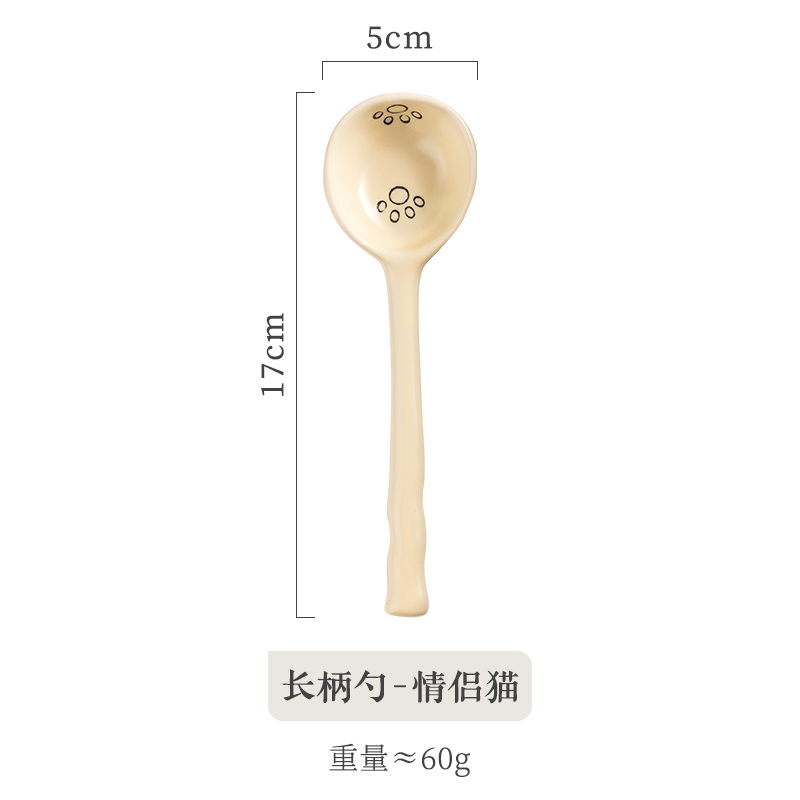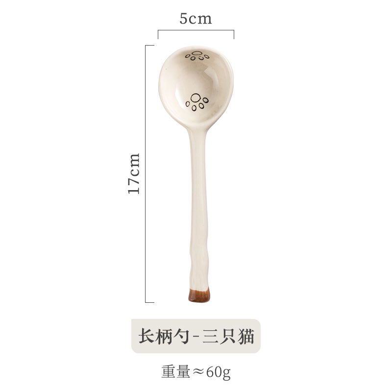 • 키 큰 밥 그릇 긴 손잡이 숟가락-고양이 3 마리 (2 팩)