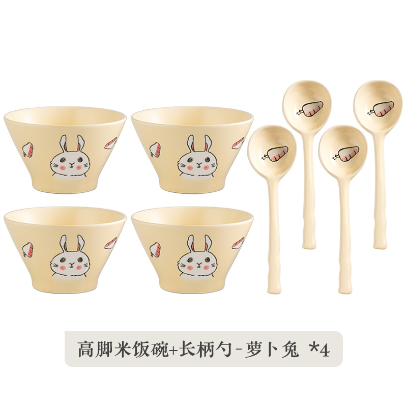 • 긴 손잡이 숟가락 무 토끼 (4 팩) 와 다리가 높은 밥 그릇