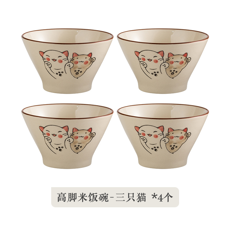 • 높은 발 밥 그릇-세 고양이 (4 팩)