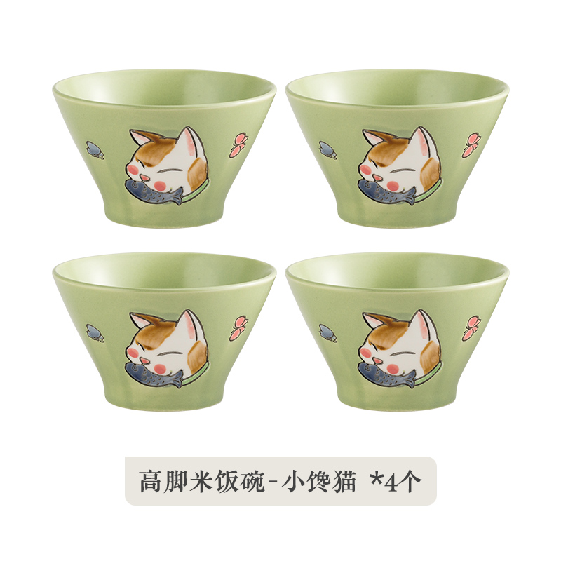• 높은 발 밥 그릇-작은 욕심 고양이 (4 팩)