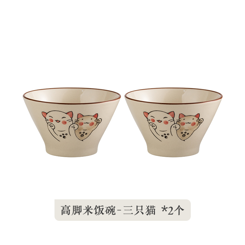 • 높은 발 밥 그릇-세 고양이 (팩 2)