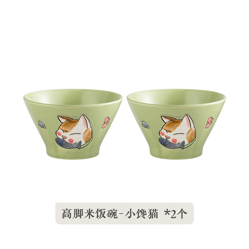 • 높은 발 밥 그릇-작은 욕심 고양이 (2 팩)