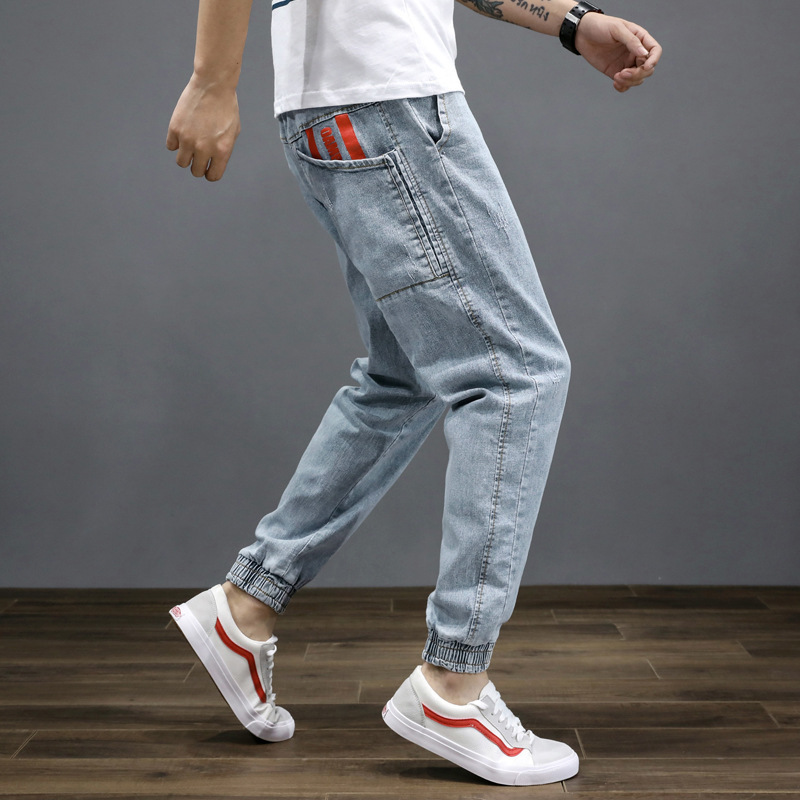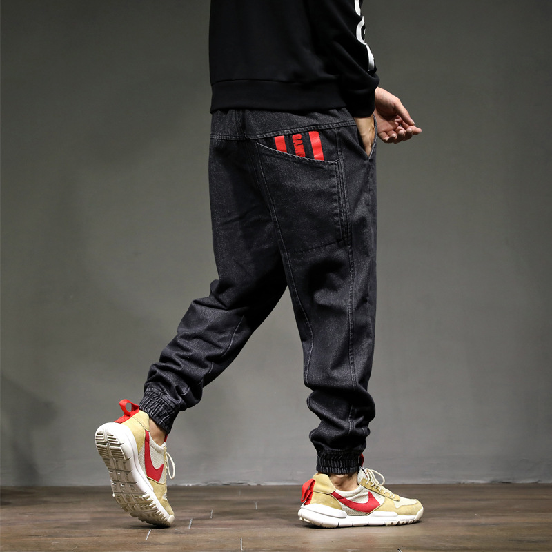 봄과 여름 새로운 남성용 초대형 청바지 남성용 느슨한 하렘 바지 레이스 업 느슨한 허리 힙합 튜닉 바지스토어 가기