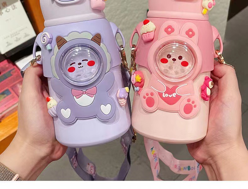 새로운 디자인의 예쁜 어린이 보온병, 316 스테인리스 물병, 학생 유치원용 빨대 보온병, 선물용 컵