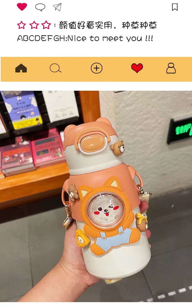 새로운 디자인의 예쁜 어린이 보온병, 316 스테인리스 물병, 학생 유치원용 빨대 보온병, 선물용 컵스토어 가기