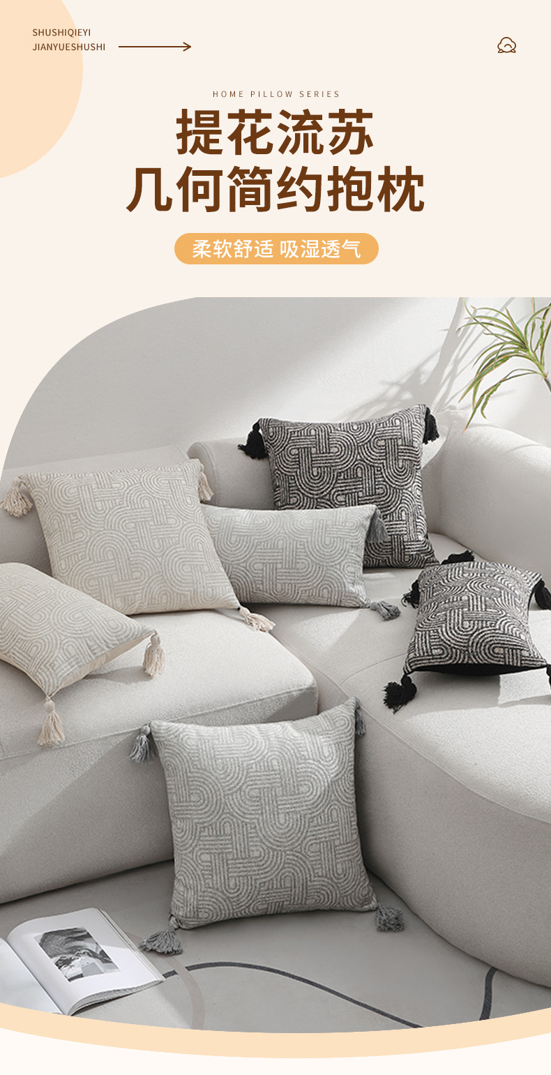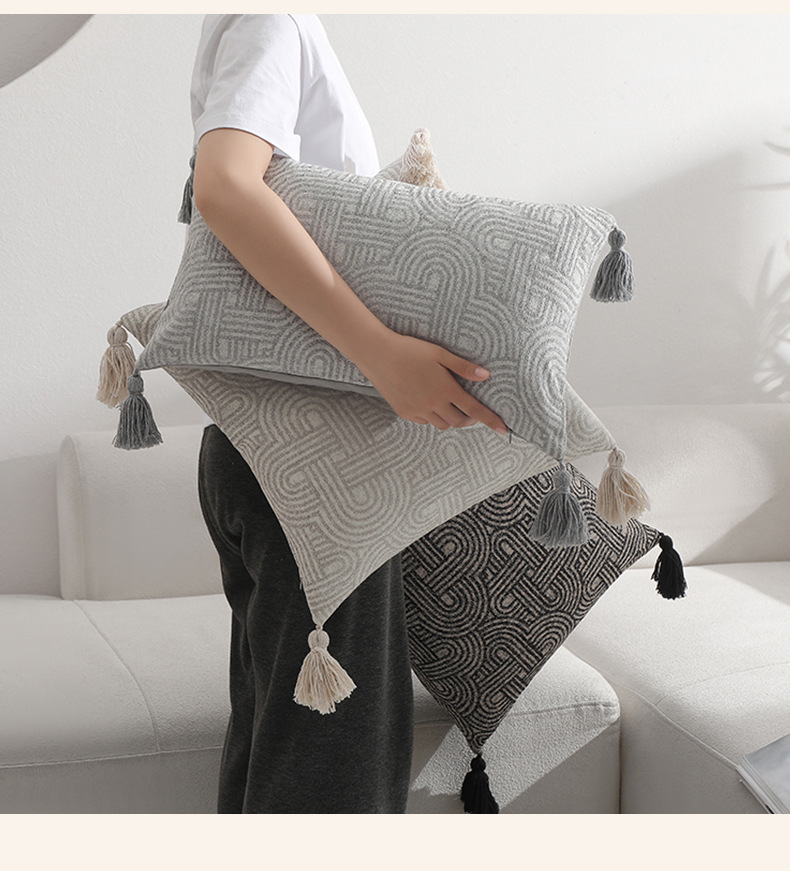 새로운 원사 염색 자카드 술 기하학적 단순 베개 베개 침대 옆 소파 네덜란드 벨벳 쿠션을 맞춤 처리스토어 가기