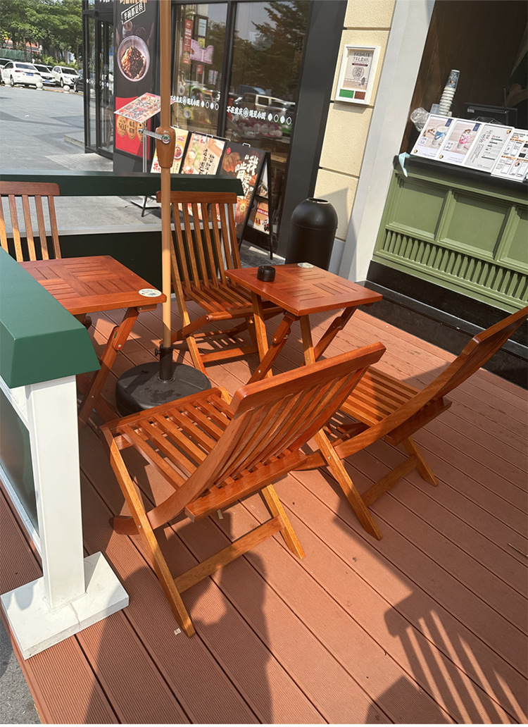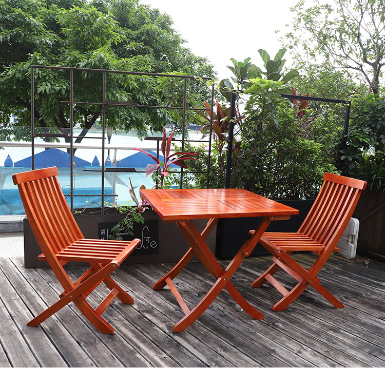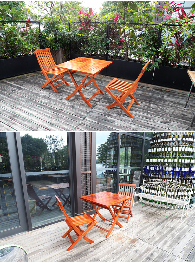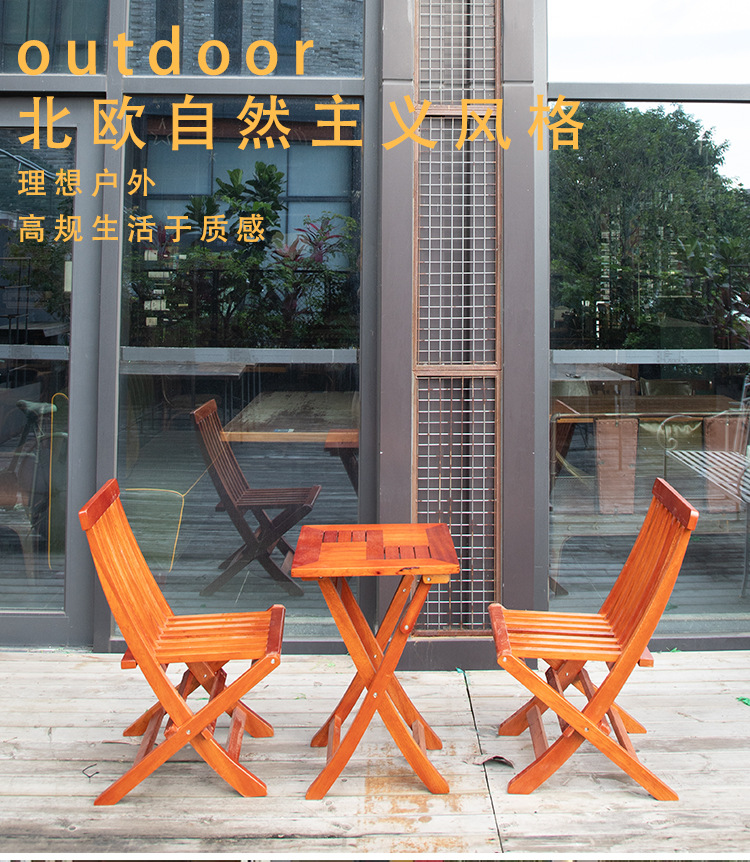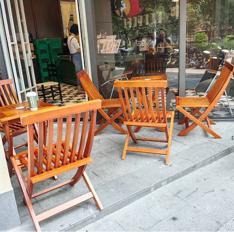 야외 접이식 테이블과 의자 단단한 나무 복고풍 안뜰 우유 차 가게 카페 상업 거리 방수 자외선 차단제 의자