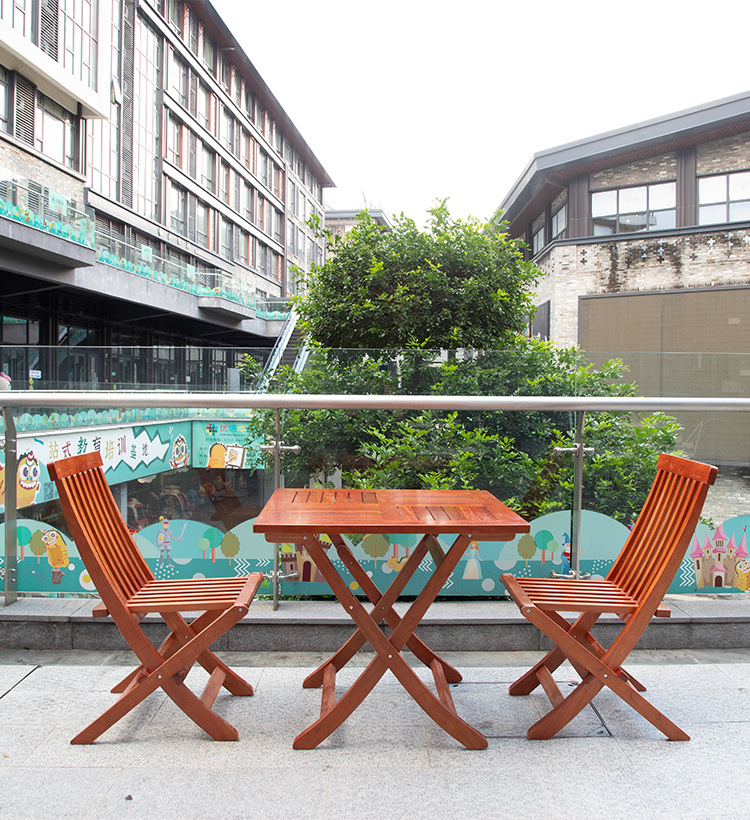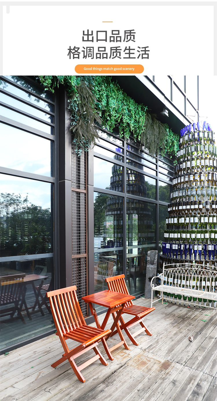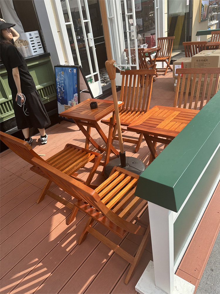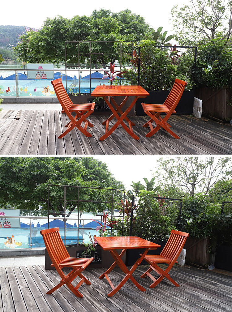 야외 접이식 테이블과 의자 단단한 나무 복고풍 안뜰 우유 차 가게 카페 상업 거리 방수 자외선 차단제 의자