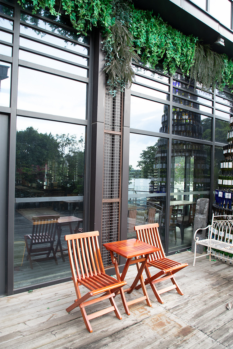 야외 접이식 테이블과 의자 단단한 나무 복고풍 안뜰 우유 차 가게 카페 상업 거리 방수 자외선 차단제 의자스토어 가기