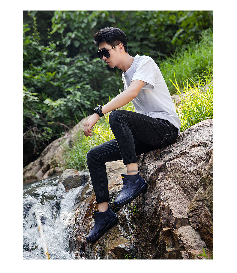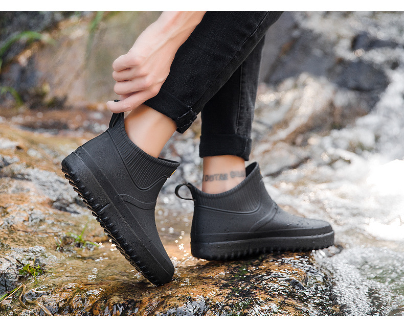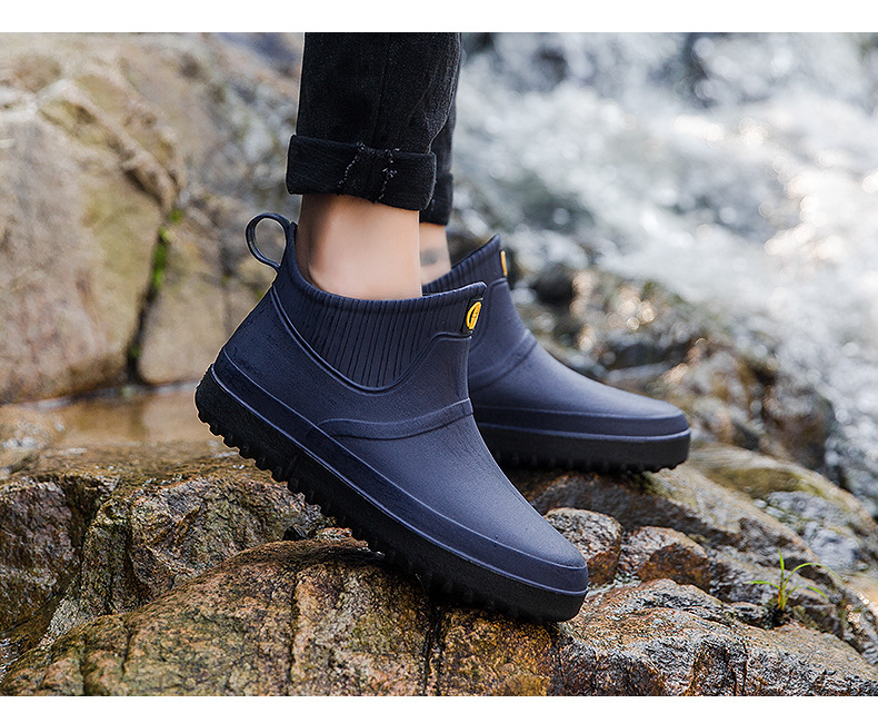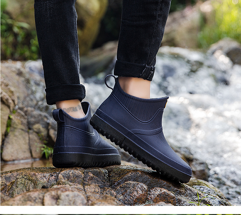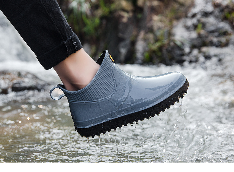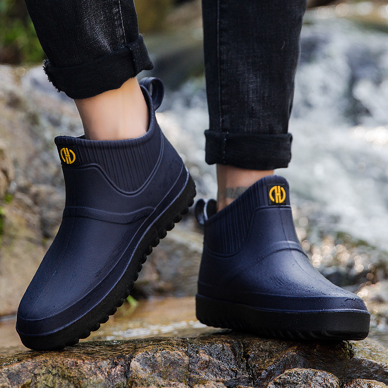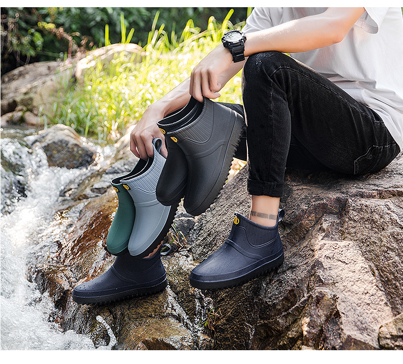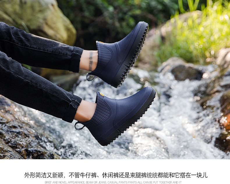 고품질 유럽 및 미국 수출 인기상품 한국 여름용 짧은 레인부츠 방수화 남성용 덧신 패셔너블한 로우탑 고무신 레인부츠스토어 가기