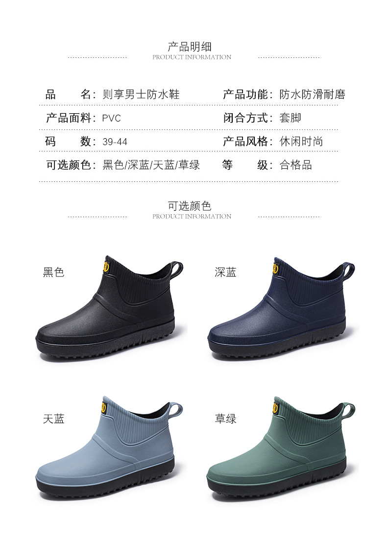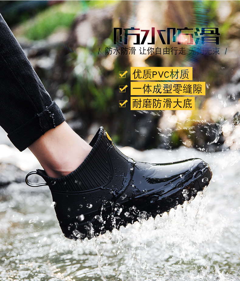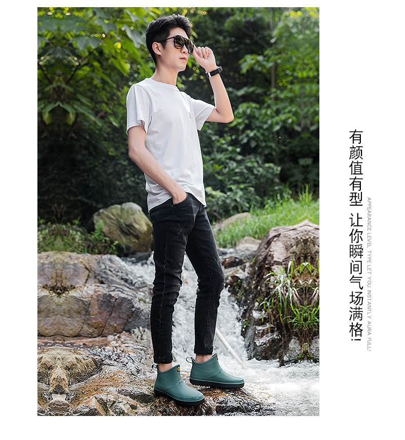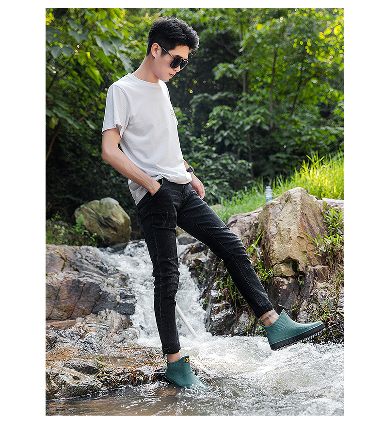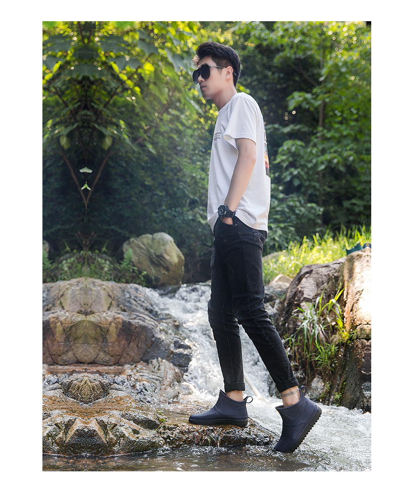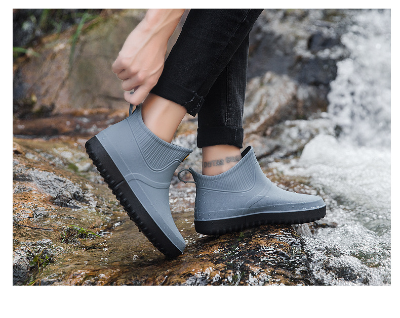 고품질 유럽 및 미국 수출 인기상품 한국 여름용 짧은 레인부츠 방수화 남성용 덧신 패셔너블한 로우탑 고무신 레인부츠스토어 가기