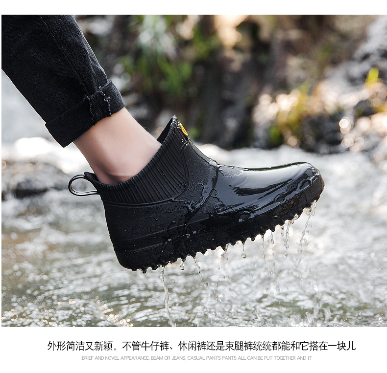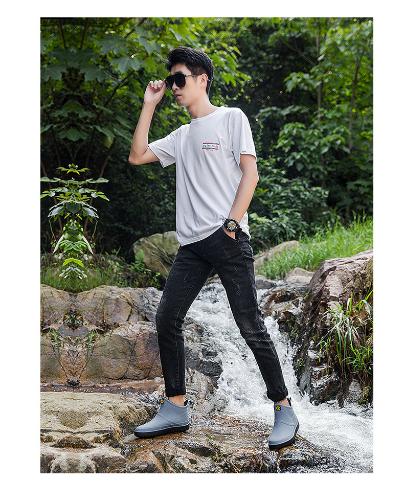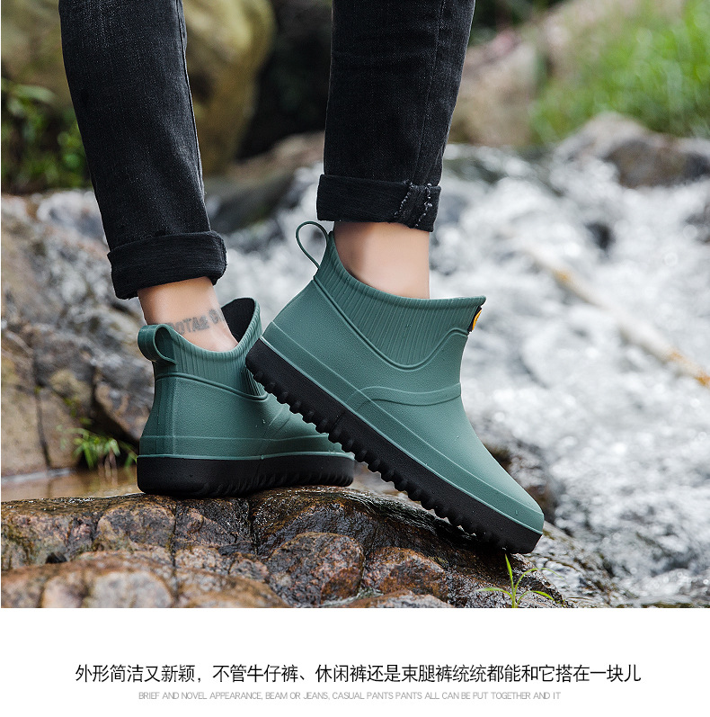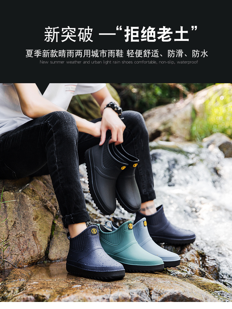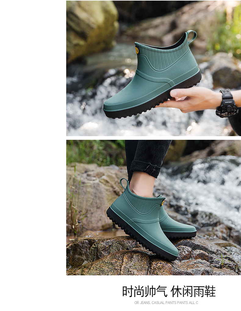 고품질 유럽 및 미국 수출 인기상품 한국 여름용 짧은 레인부츠 방수화 남성용 덧신 패셔너블한 로우탑 고무신 레인부츠