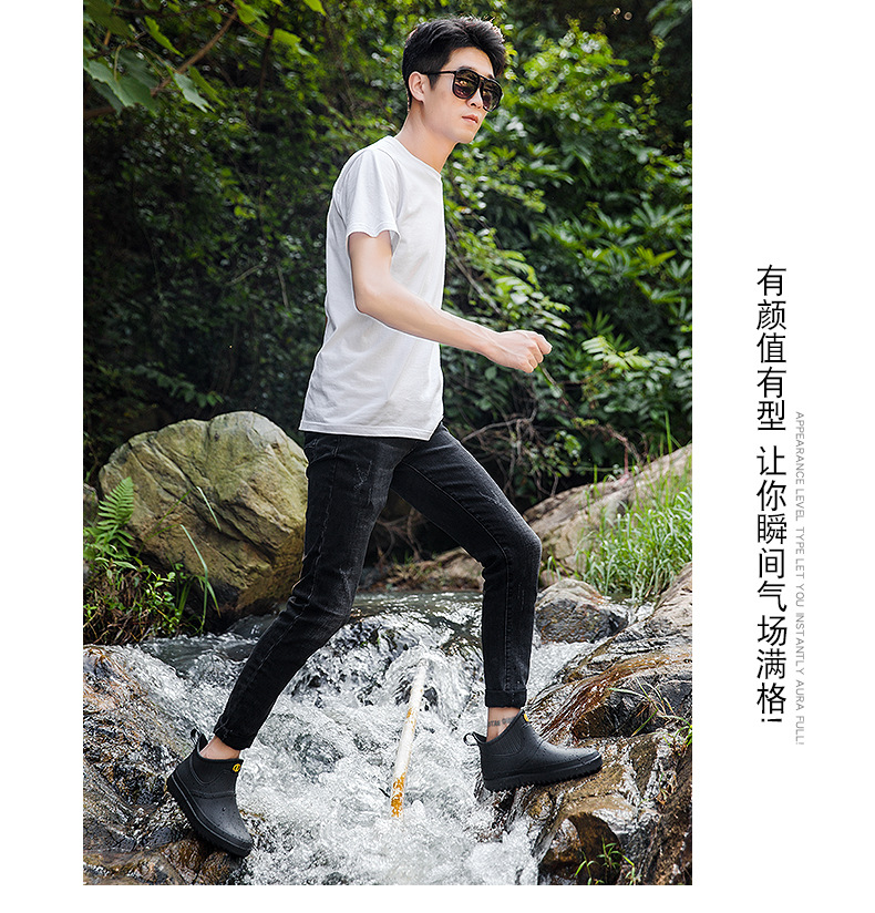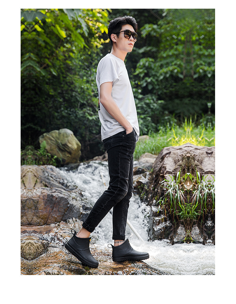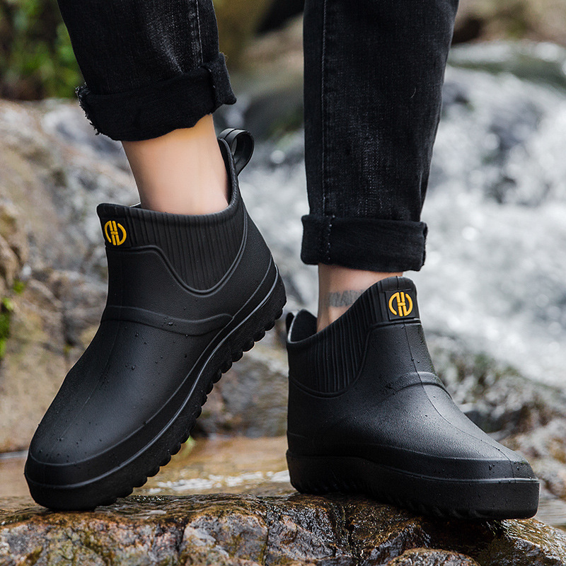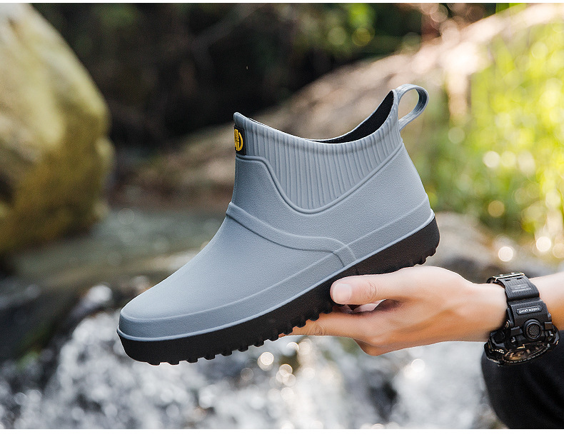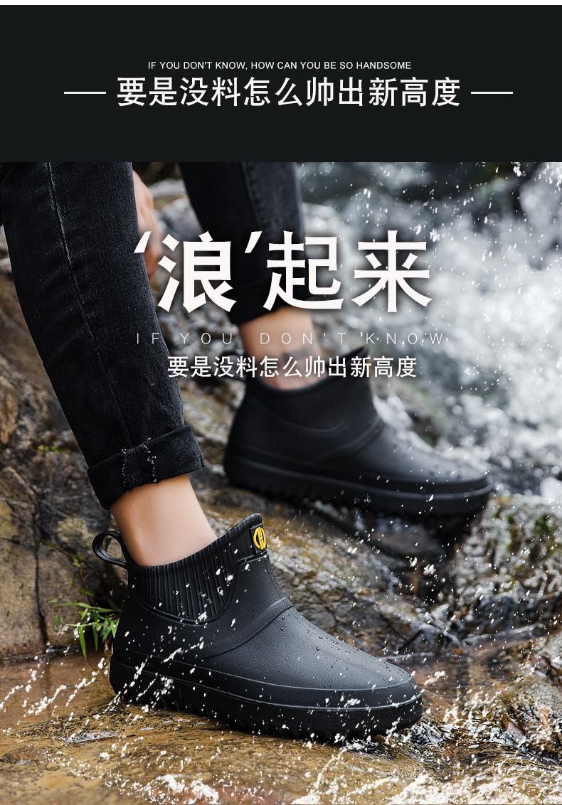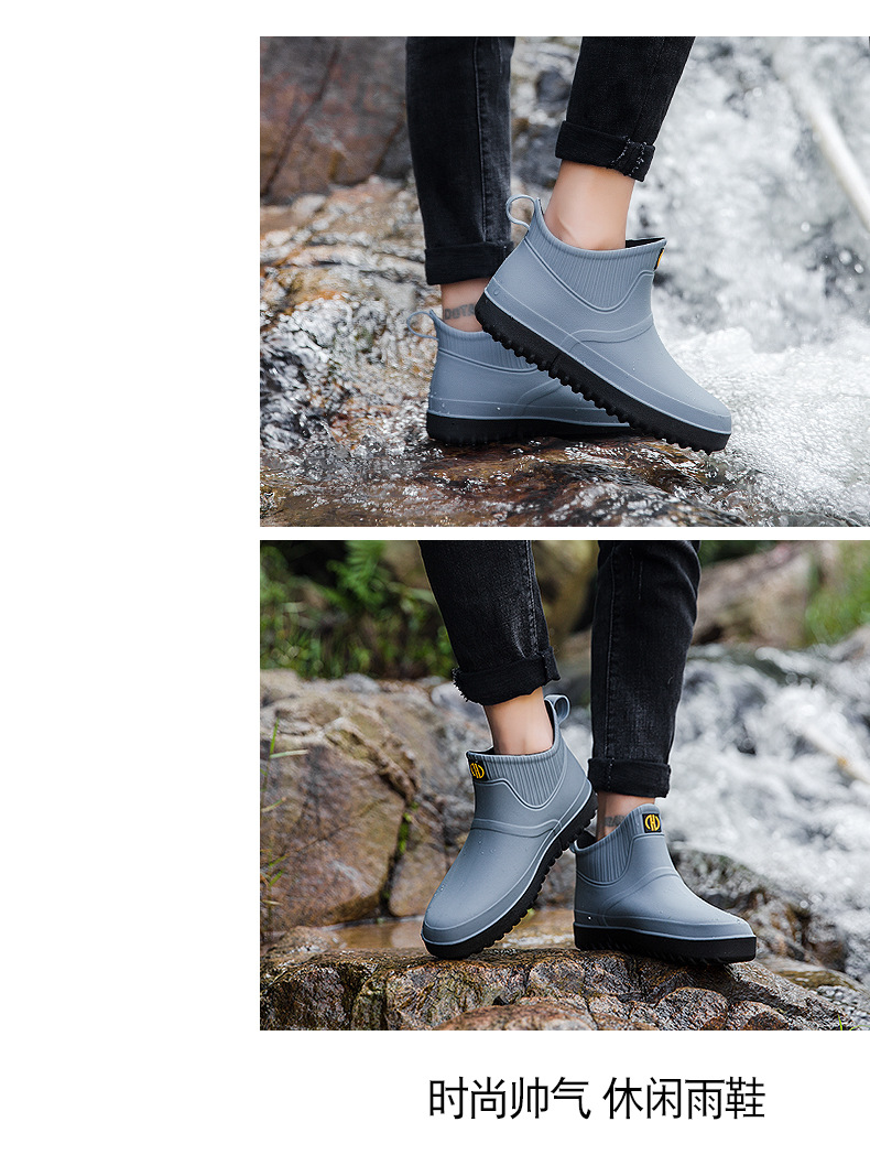 고품질 유럽 및 미국 수출 인기상품 한국 여름용 짧은 레인부츠 방수화 남성용 덧신 패셔너블한 로우탑 고무신 레인부츠