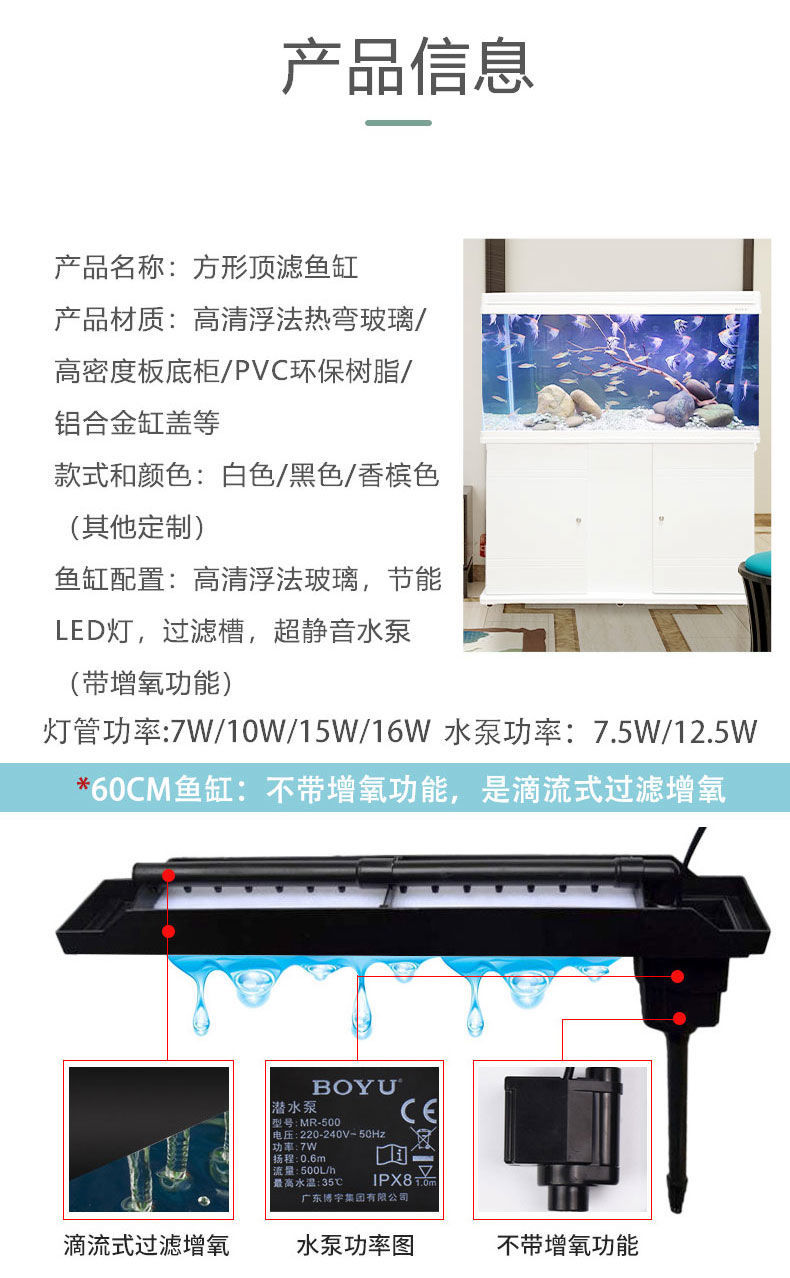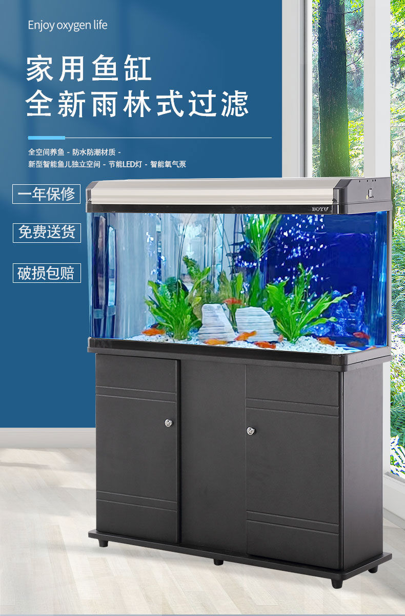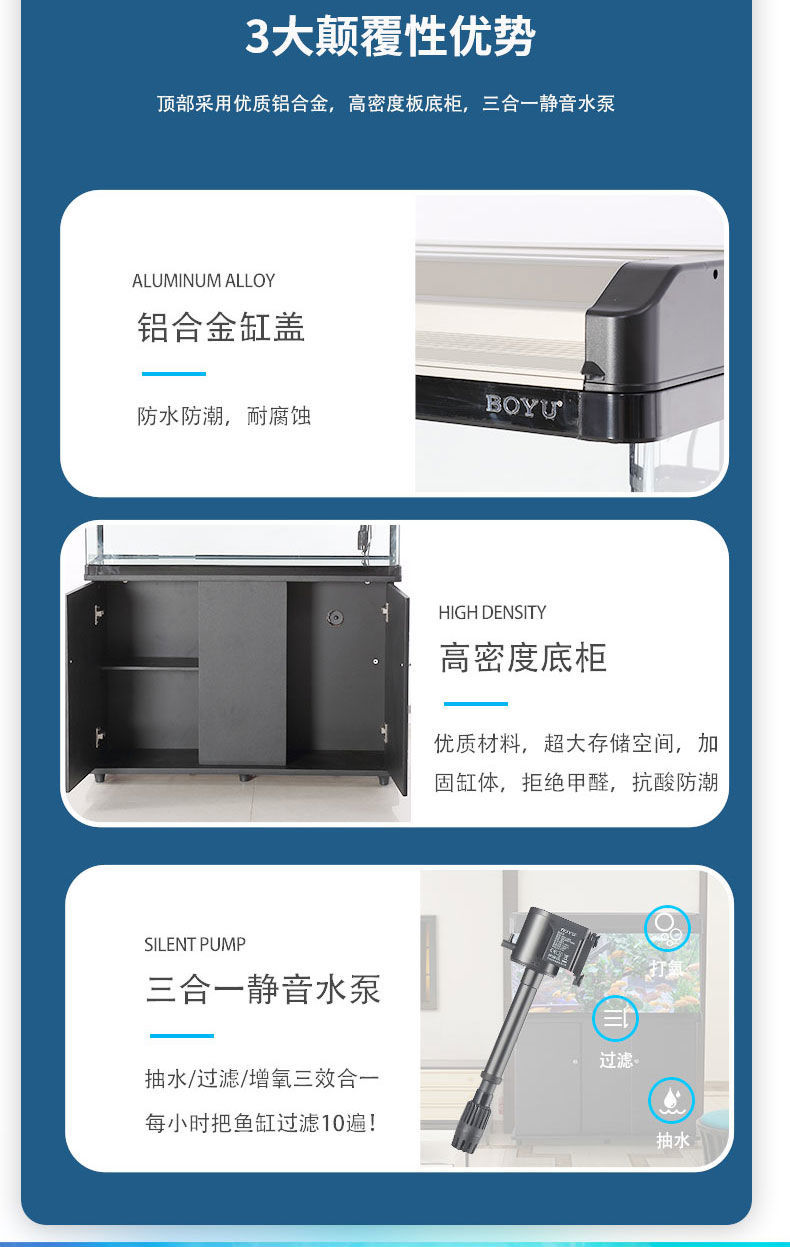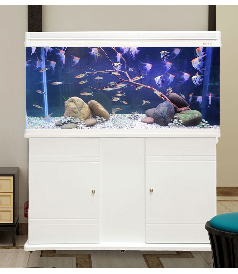 Boyu 직사각형 데스크탑 물고기 탱크 거실 가구 80cm 1 미터 2 유리 금붕어 탱크 게으른 사람들 무료 변경 수족관스토어 가기