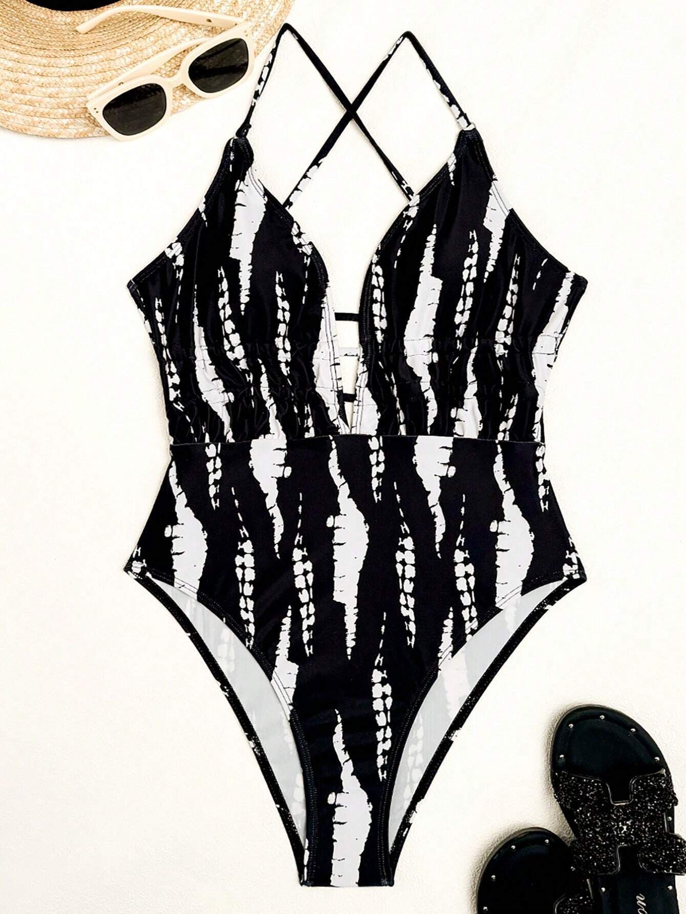 수영복 여성용 하이 엔드 2024 새로운 유럽과 미국의 섹시 백리스 원피스 수영복 온천 V 넥 스트랩 수영복스토어 가기