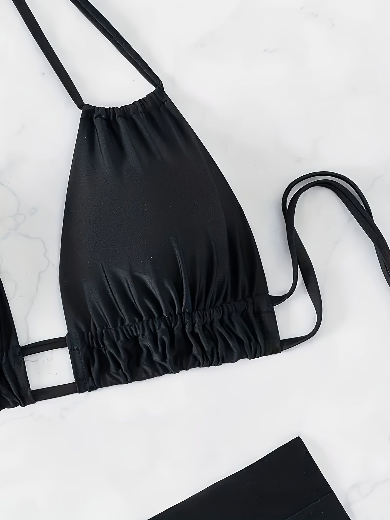 2024 유럽 및 미국 신상 수영복 여성 섹시 백리스 끈 블랙 딥 V 모아주는 비키니