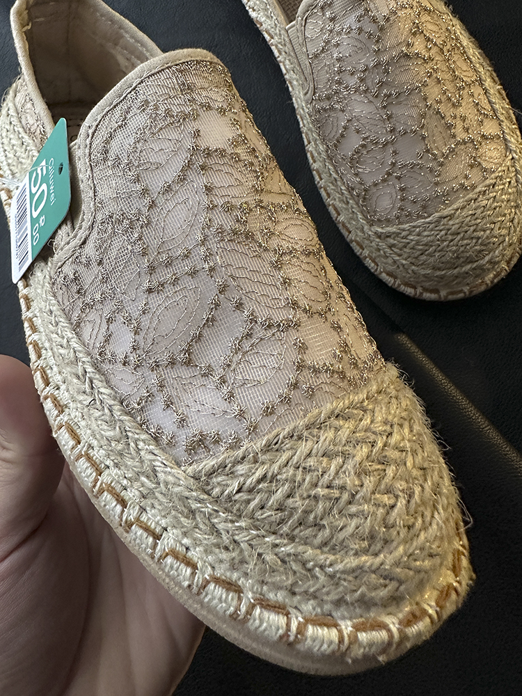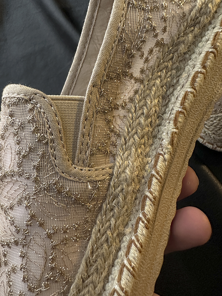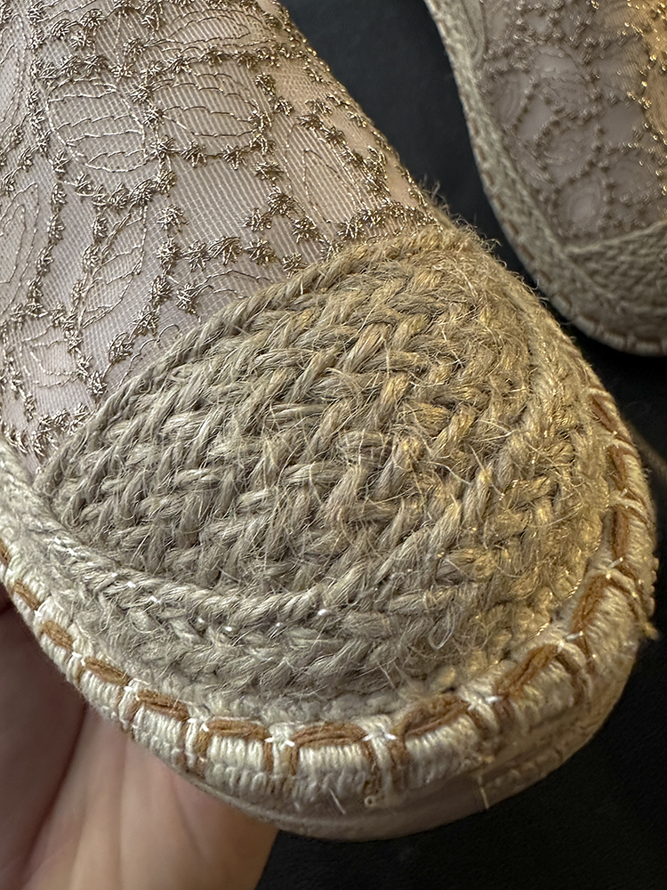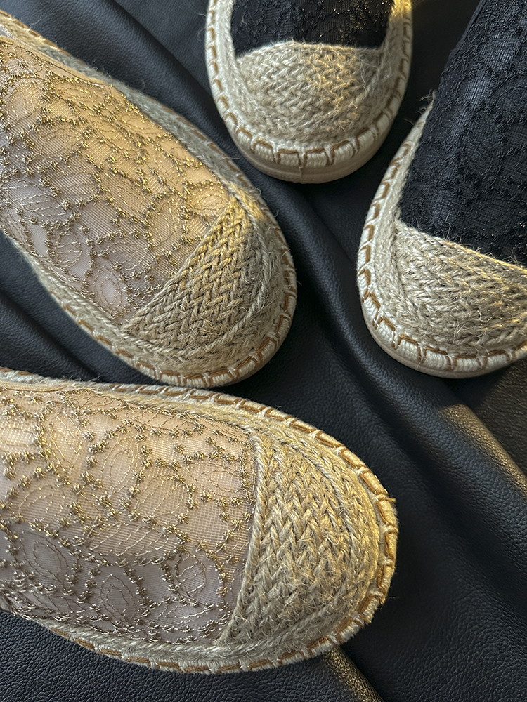 重工蕾丝刺绣的鞋面