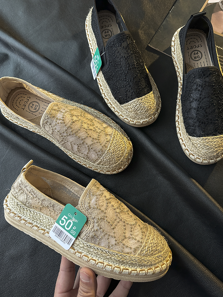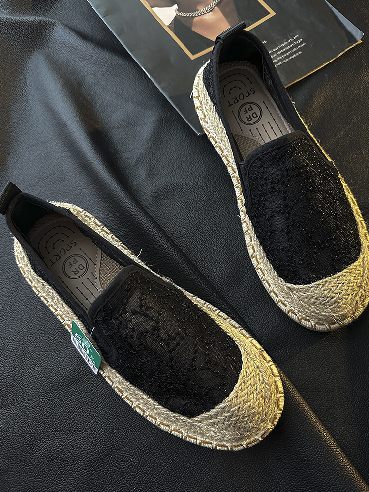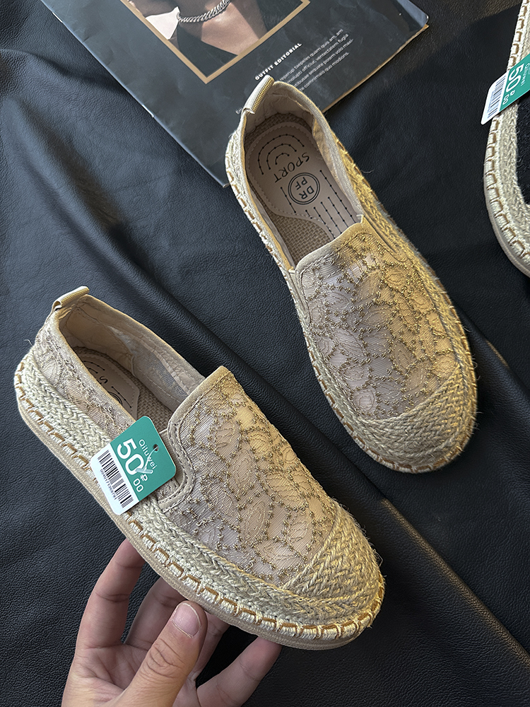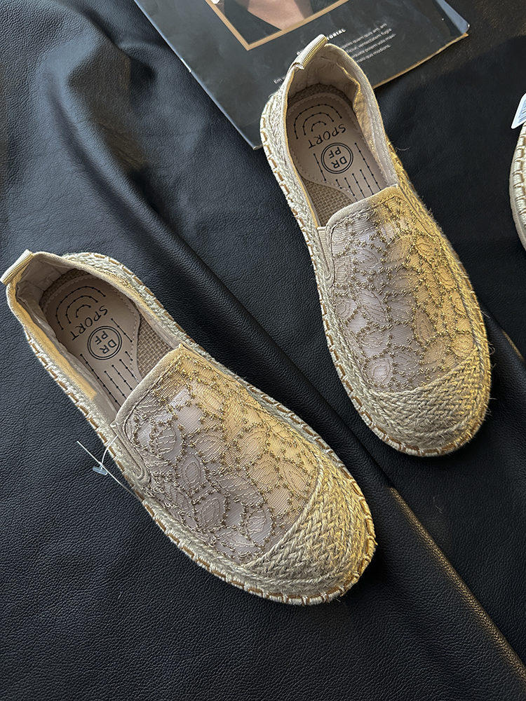 러시아로 가세요! 결혼식! 중공업 레이스 자수 밀짚 복고풍 캐주얼 신발 통기성 플랫 신발 여성