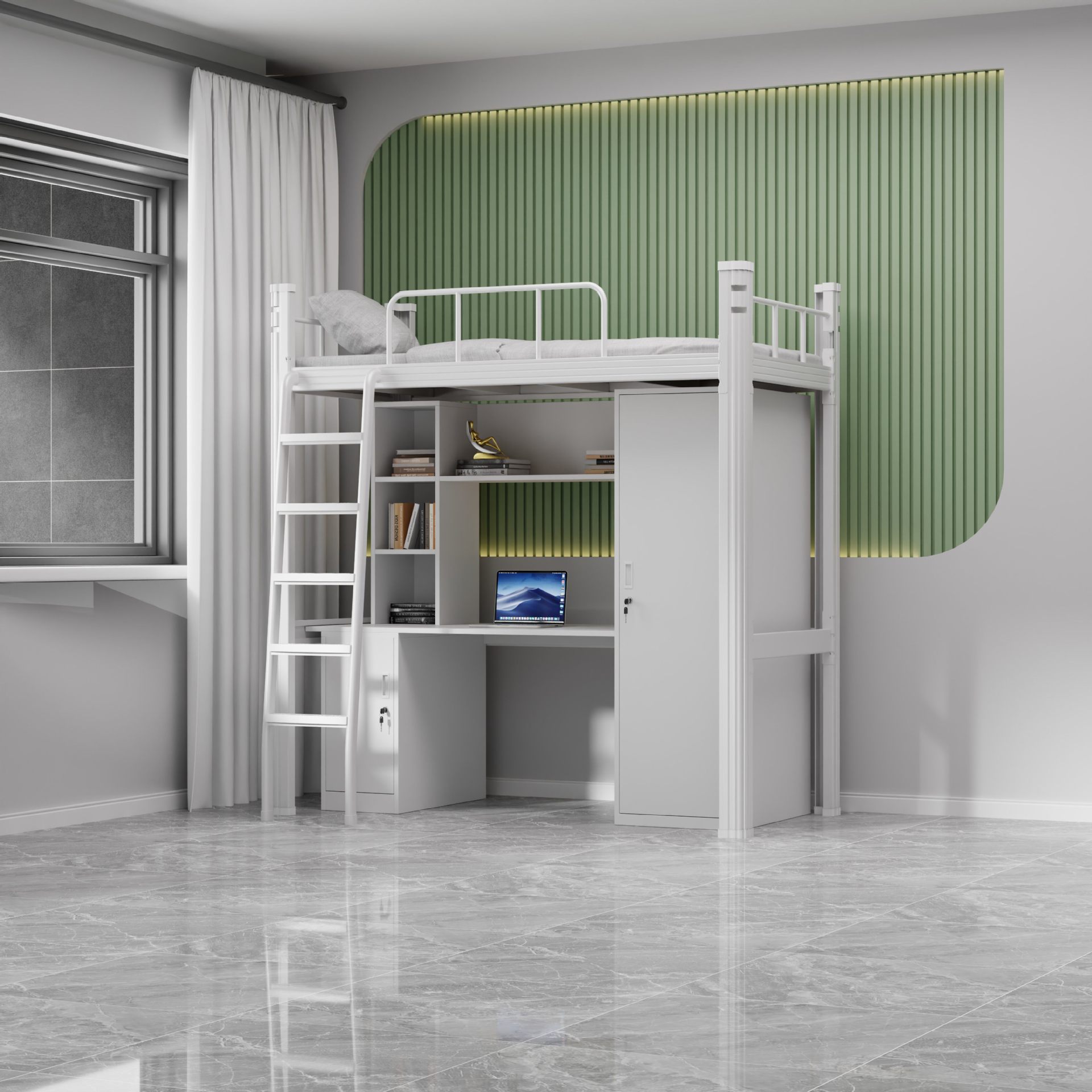 • 흰색 1인용 사다리형 [스틸 양문형 침대 밑 수납장]