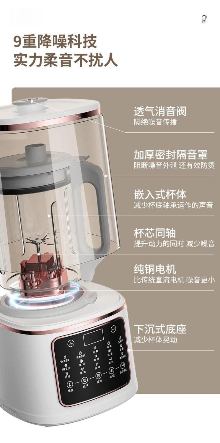 방음 커버가 있는 다기능 벽 파괴 기계, 완전 자동 가정용 가열 두유 기계, 요리 기계