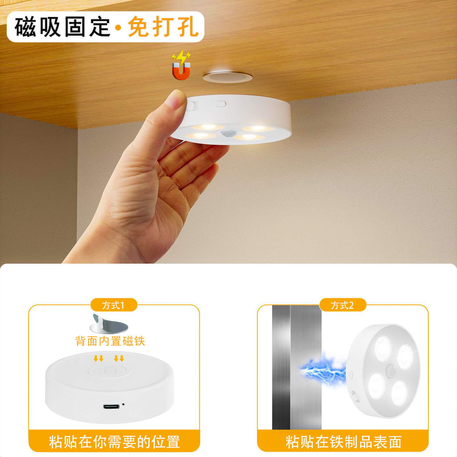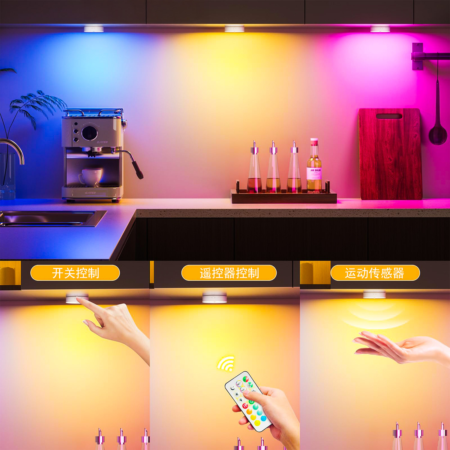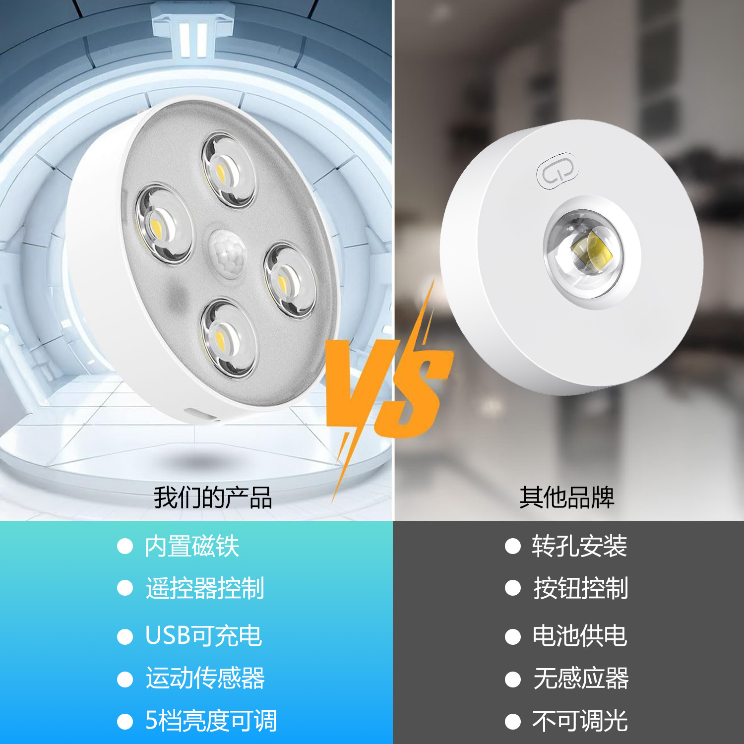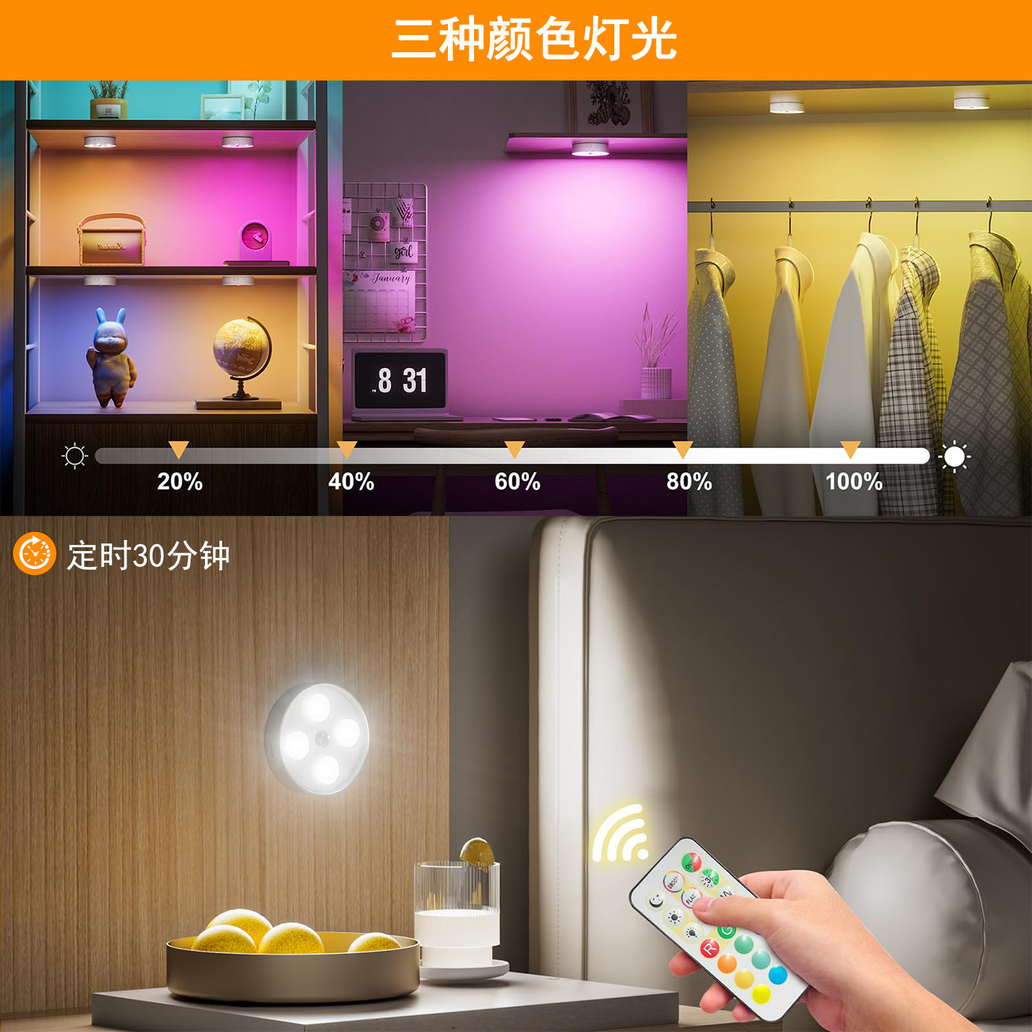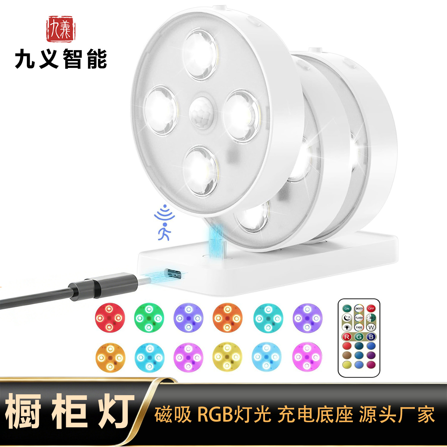 국경 라운드 유도 야간 조명 RGB 고양이 눈 캐비닛 라이트 옷장 조명 충전 지능형 원격 제어 인체 유도 조명