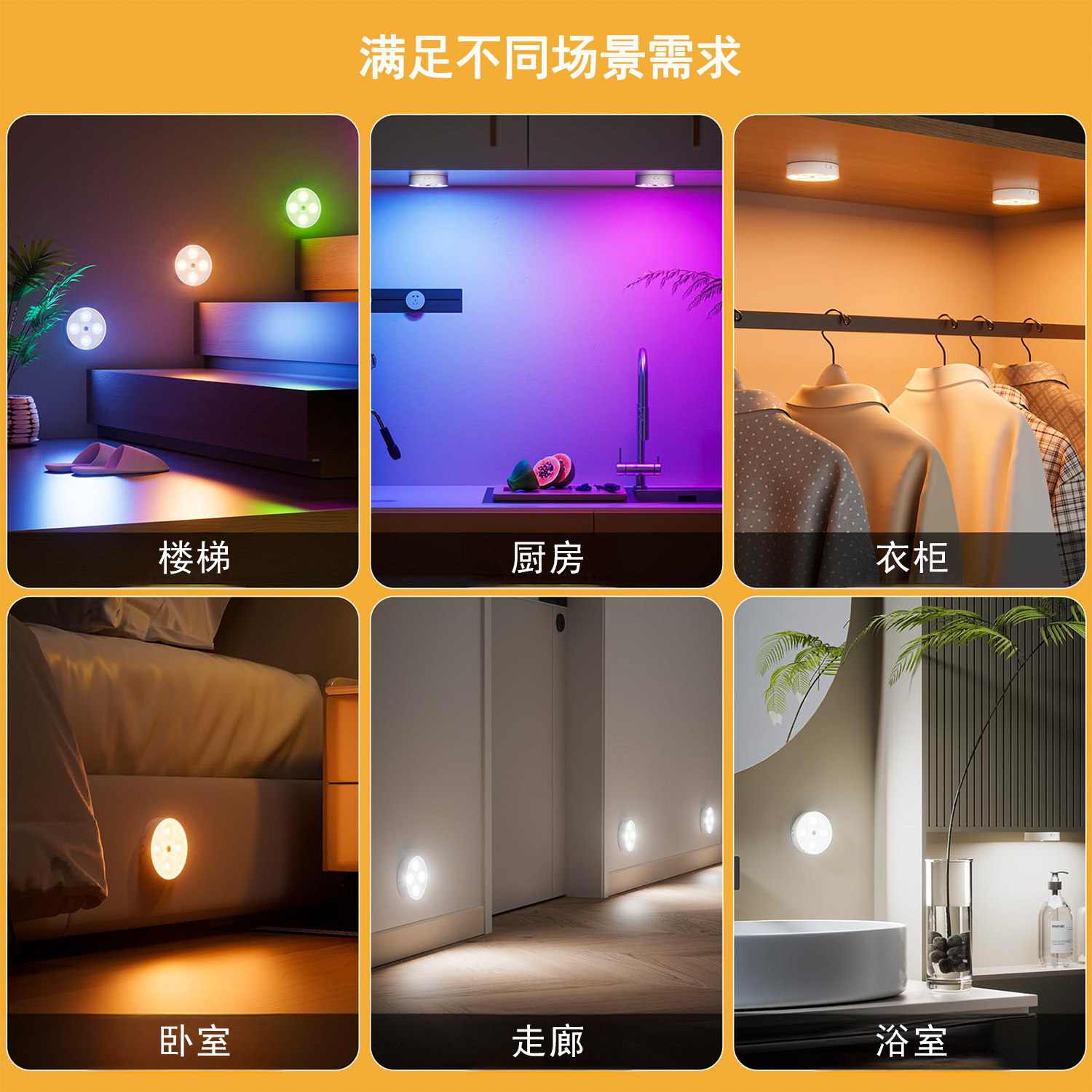 국경 라운드 유도 야간 조명 RGB 고양이 눈 캐비닛 라이트 옷장 조명 충전 지능형 원격 제어 인체 유도 조명스토어 가기
