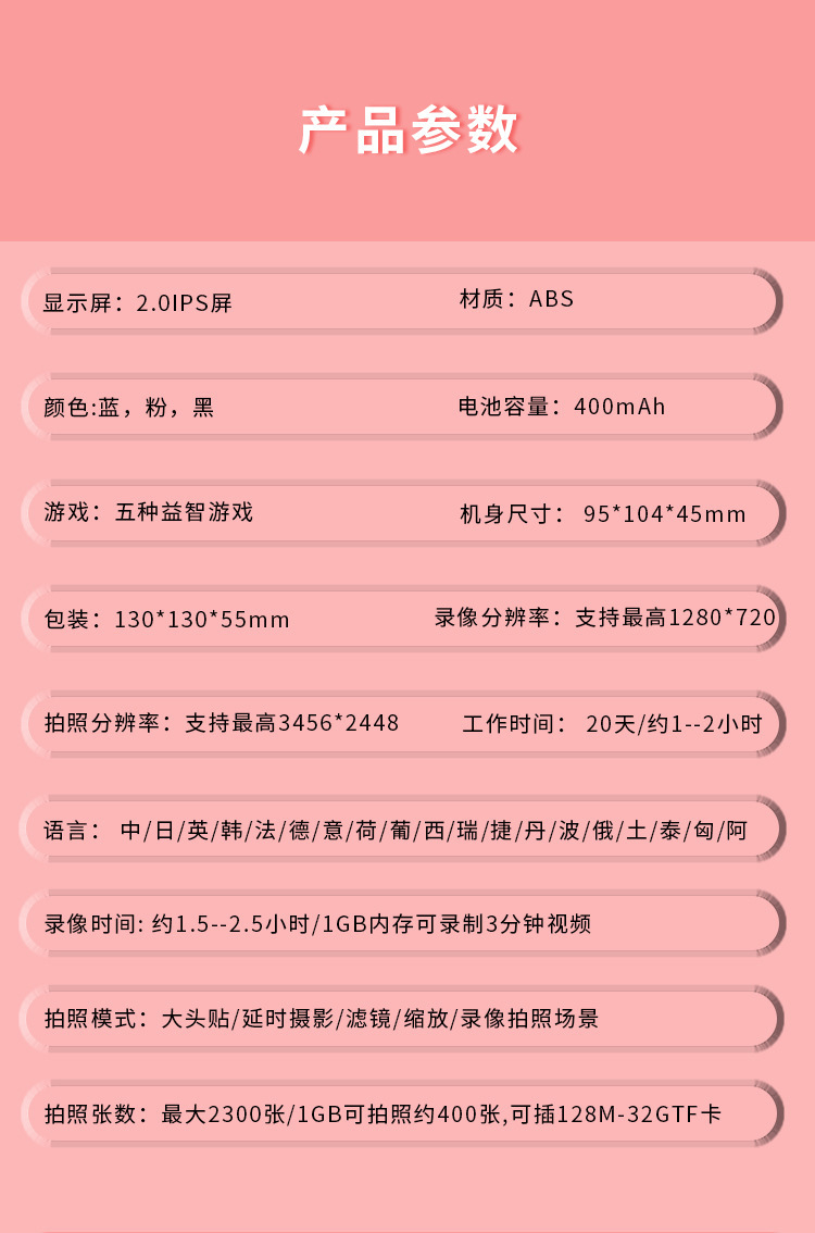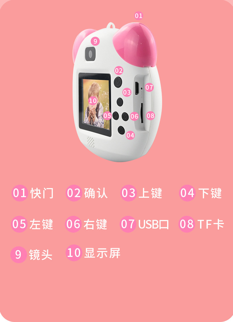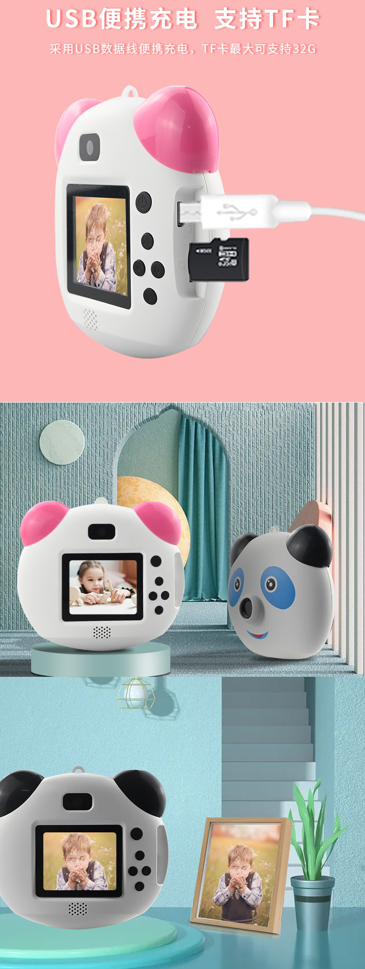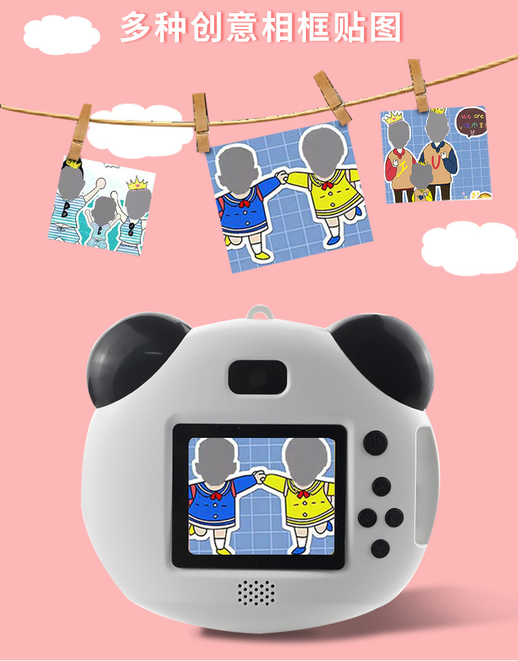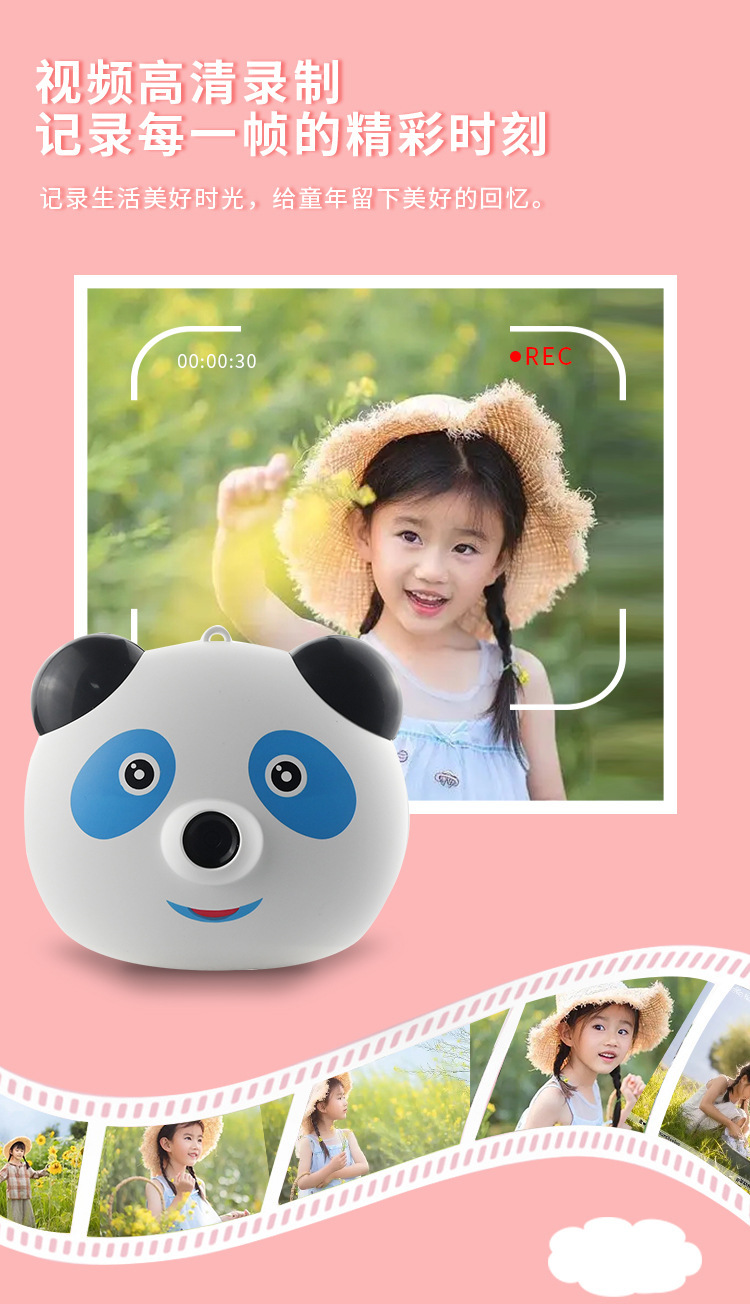 새로운 만화 팬더 어린이 디지털 카메라 HD 미니 카메라 창조적 인 사진 프레임 맵 사진 비디오 장난감