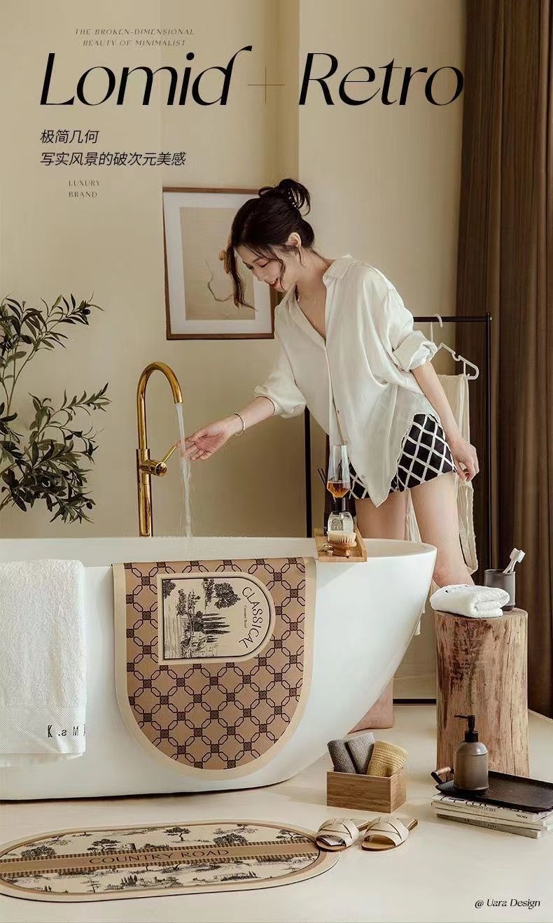 고급스러운 욕실 발매트, 규조토 소재의 부드러운 바닥매트, 욕실 입구용 흡수성 미끄럼 방지 발매트, 대행 배송 가능스토어 가기