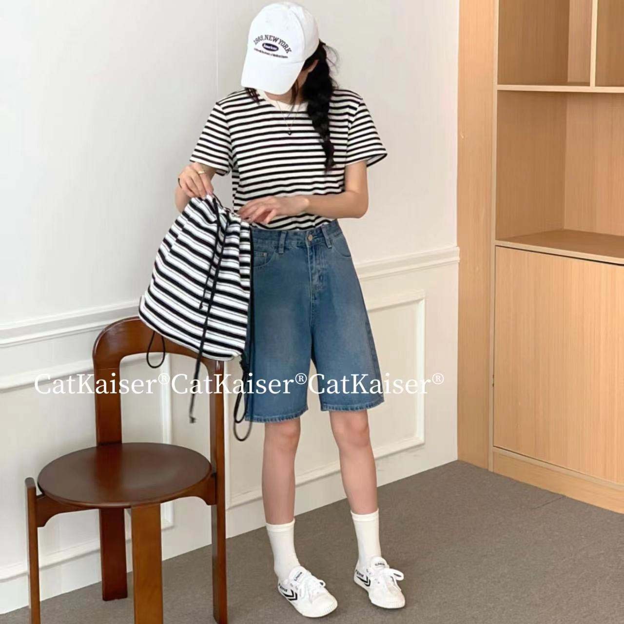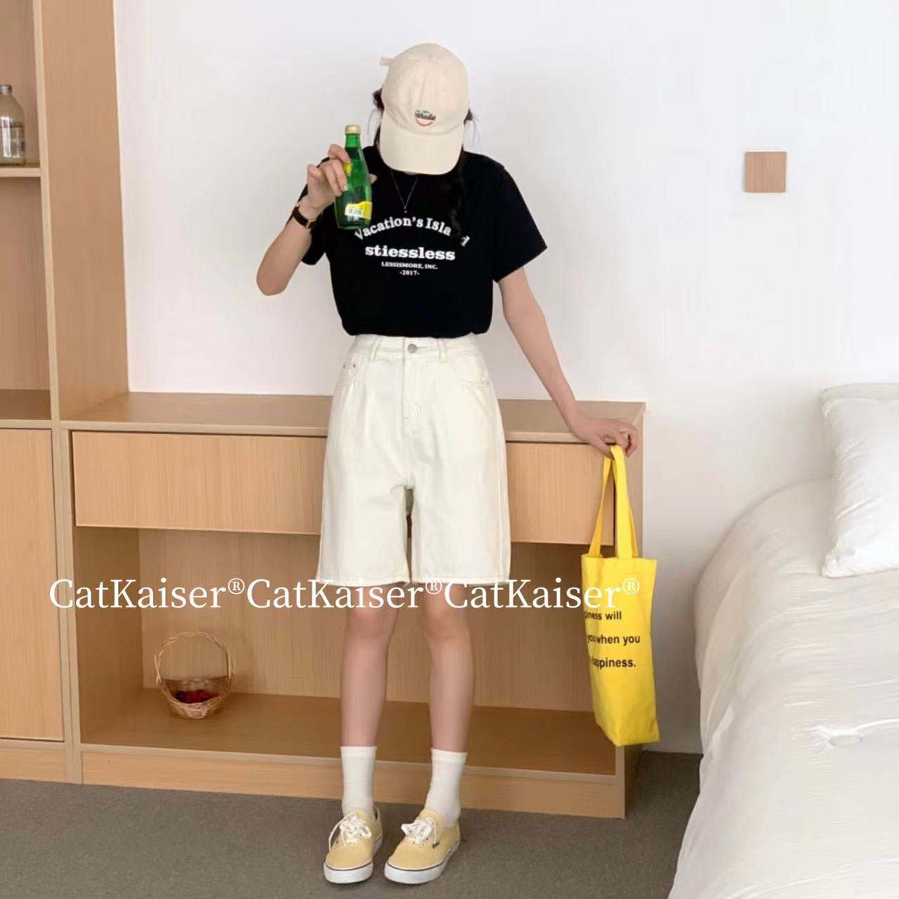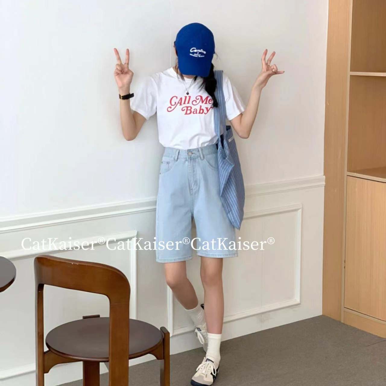 CatKaiser American Style Ins 데님 바지 여름 새로운 A 라인 간단한 슬리밍 여성을위한 모든 캐주얼 반바지스토어 가기