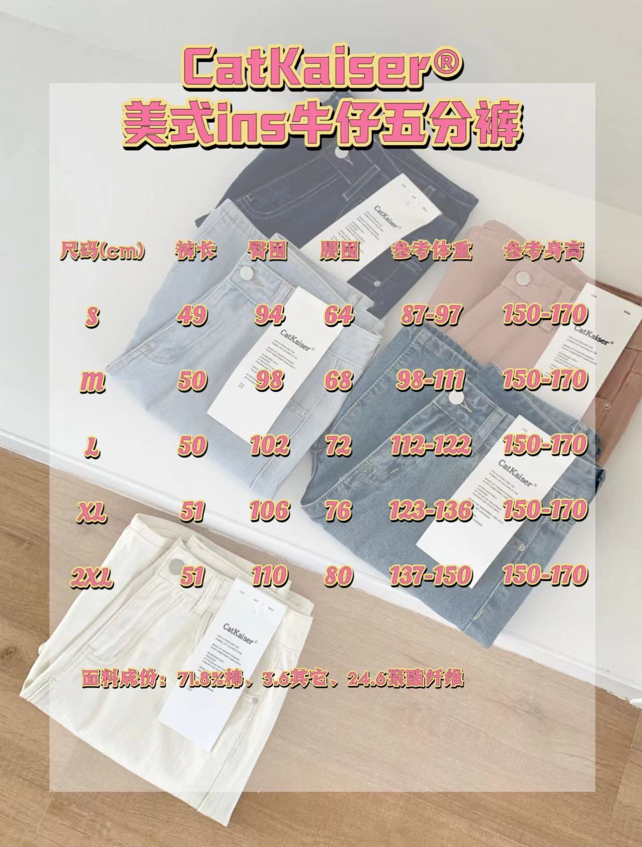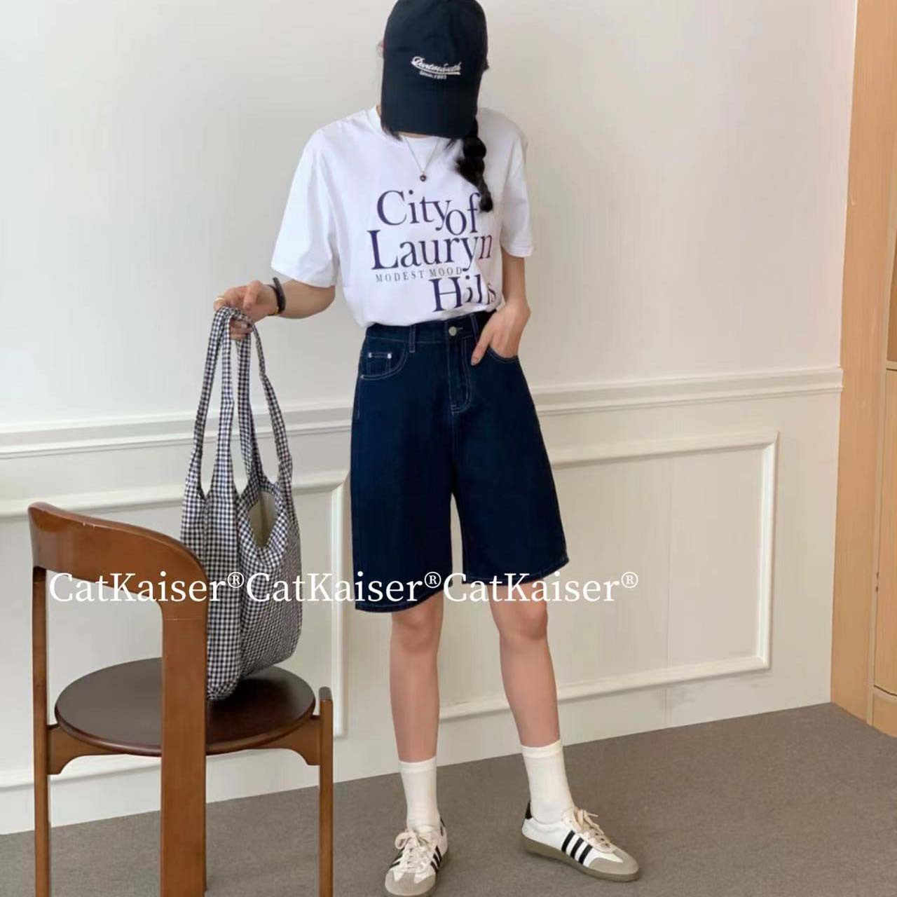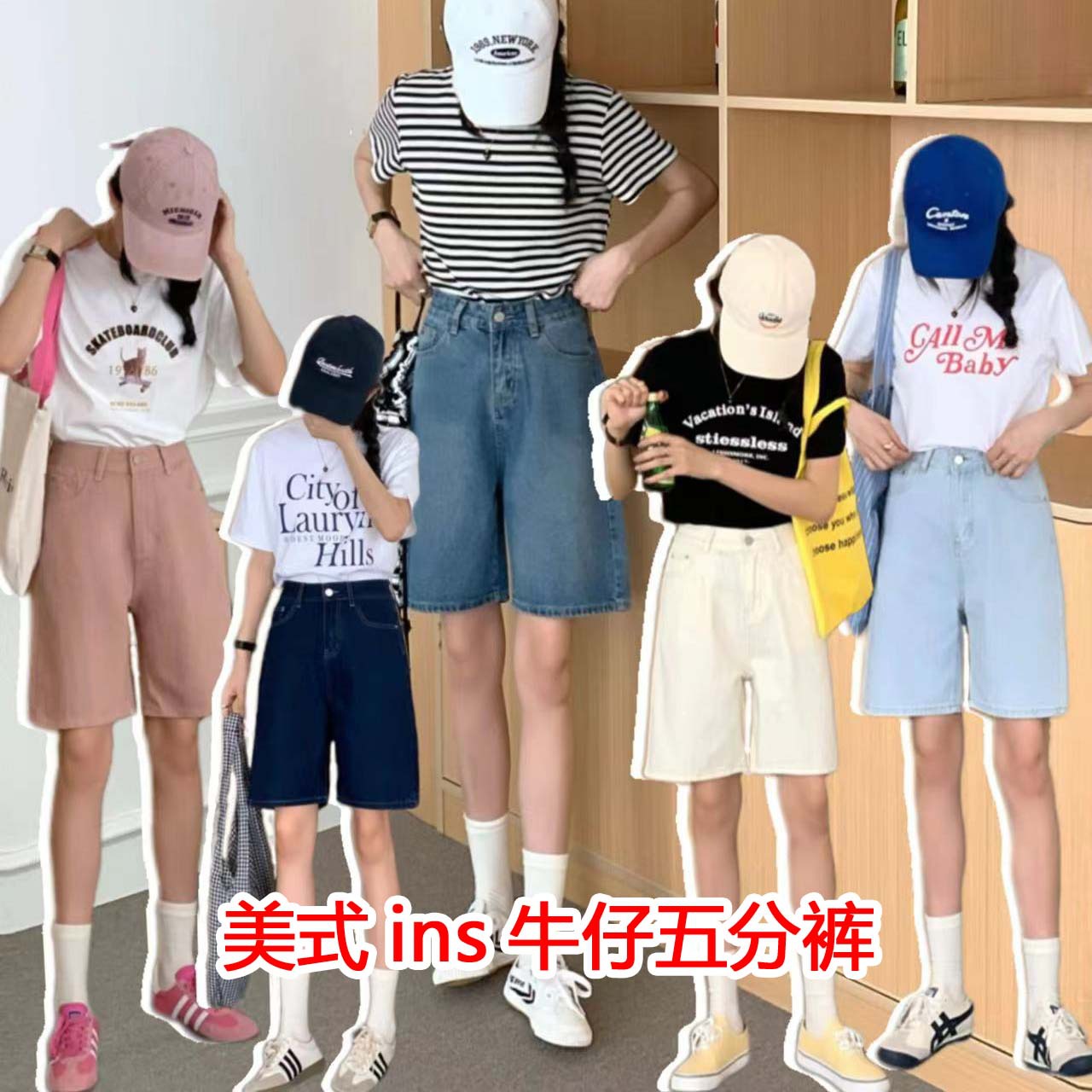 CatKaiser American Style Ins 데님 바지 여름 새로운 A 라인 간단한 슬리밍 여성을위한 모든 캐주얼 반바지스토어 가기