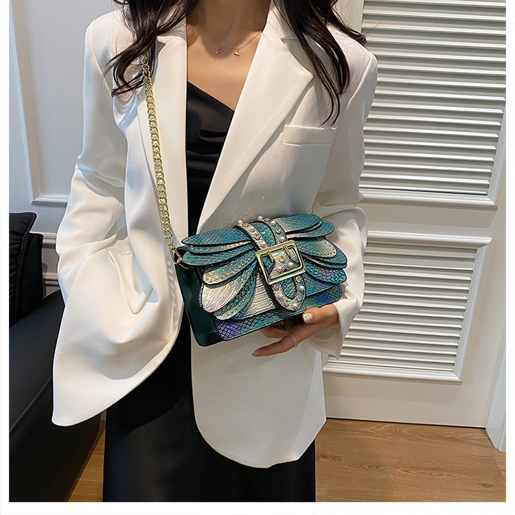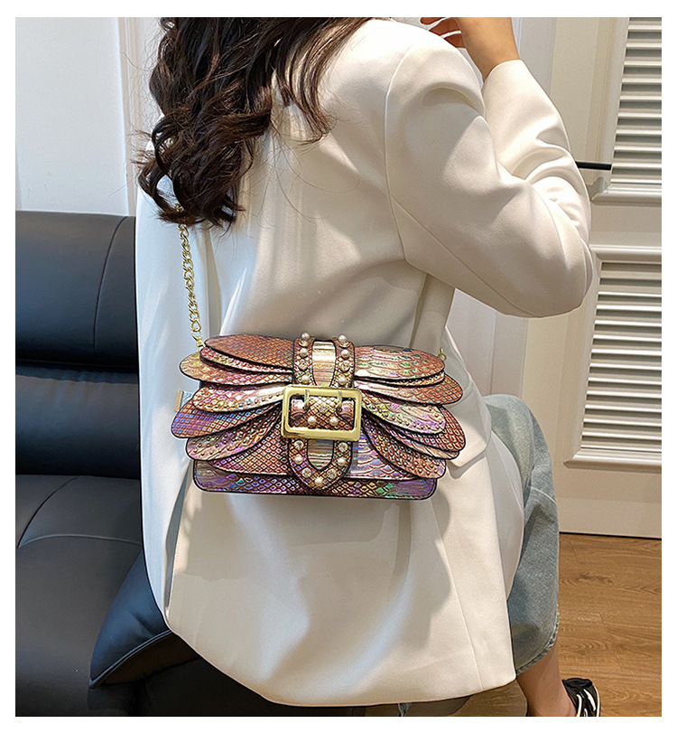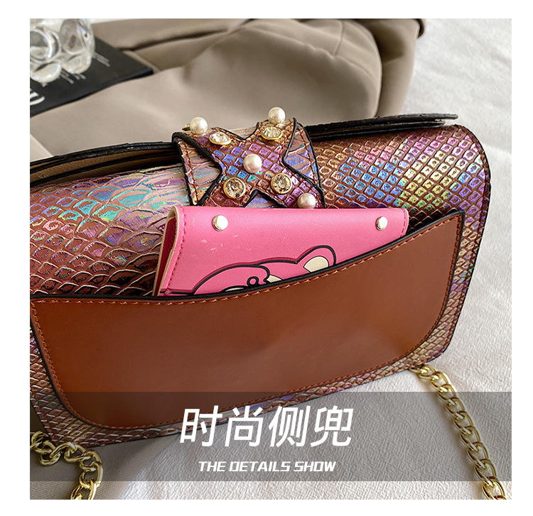여성용 가방 여성용 가방 크로스 보더 가방 2025 새로운 유럽과 미국의 복고풍 체인 가방 뱀 패턴 싱글 숄더 크로스 바디 작은 사각형 가방