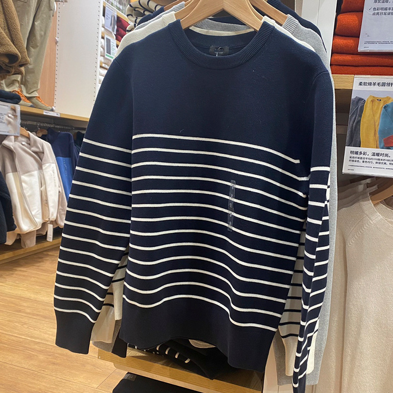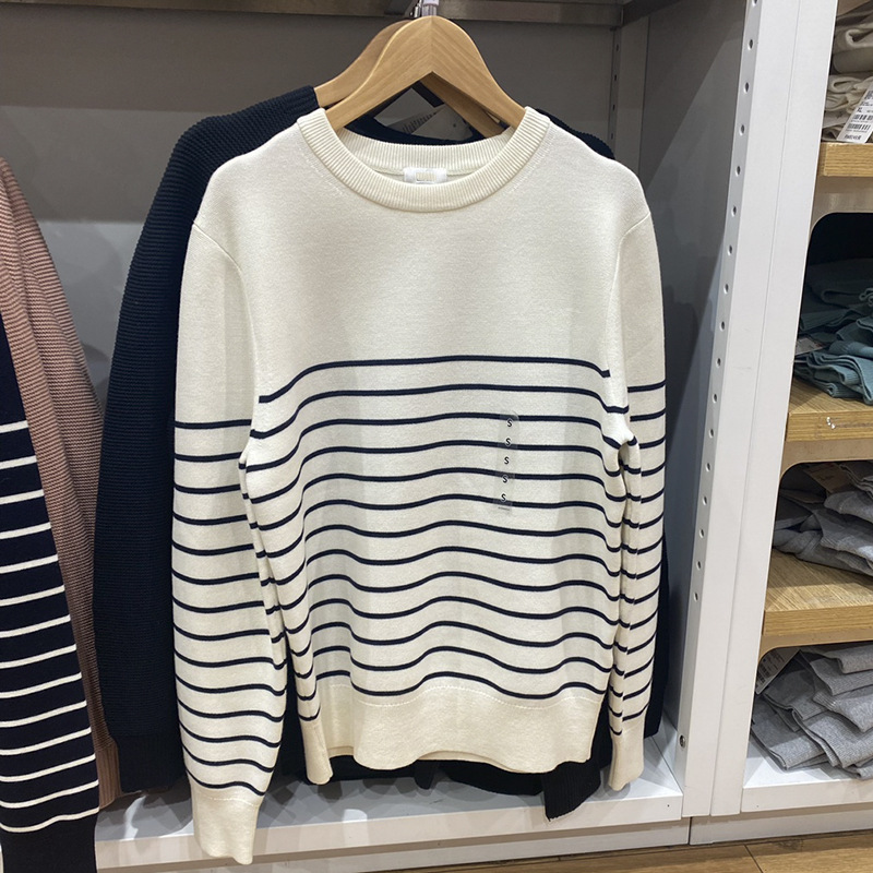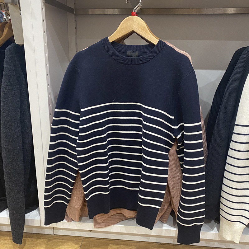 레트로 스트라이프 스웨터 봄 가을 루즈핏 캐주얼 스타일 골지 라운드넥 긴팔 니트 남성용 468753