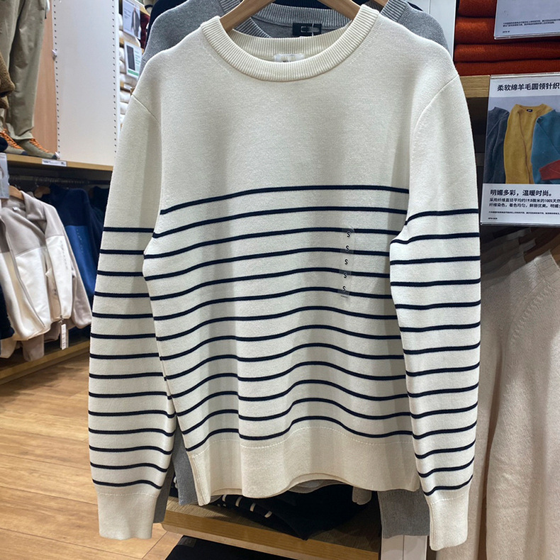 레트로 스트라이프 스웨터 봄 가을 루즈핏 캐주얼 스타일 골지 라운드넥 긴팔 니트 남성용 468753스토어 가기