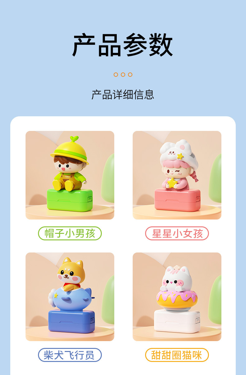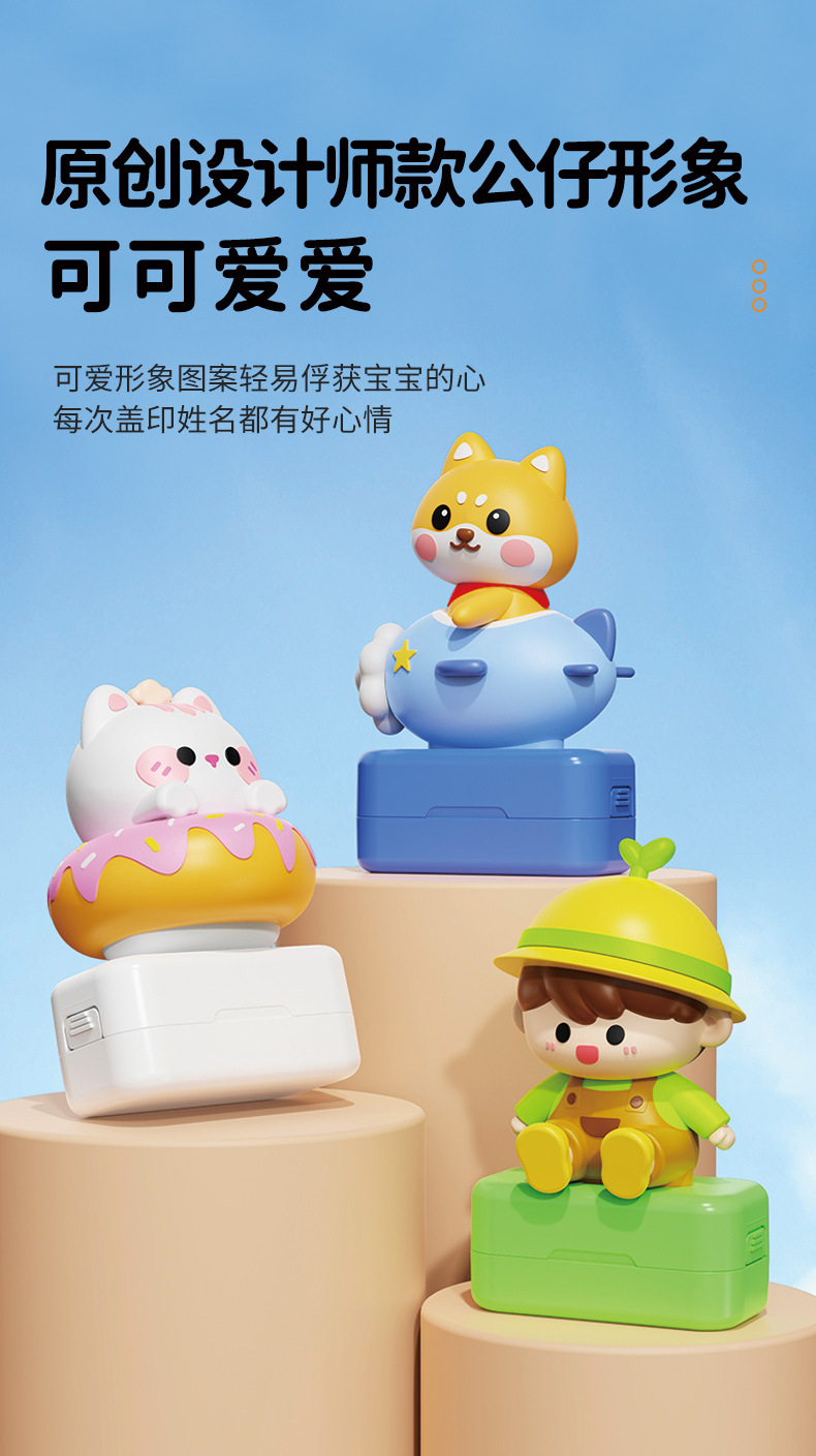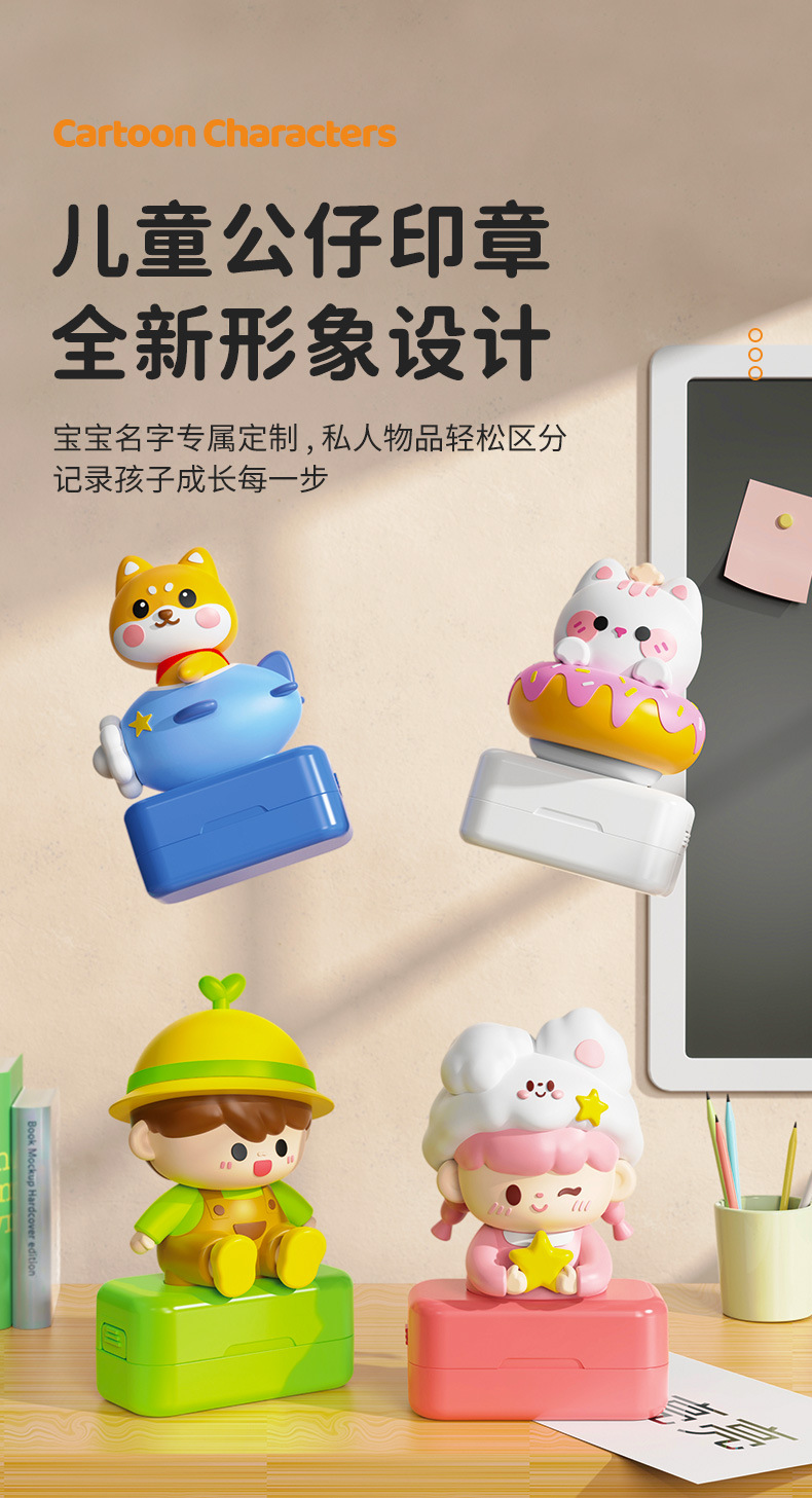 공장 직접 공급 다채로운 인형 인감 어린이 이름 만화 의류 감광성 인감 재료 현장 도매스토어 가기