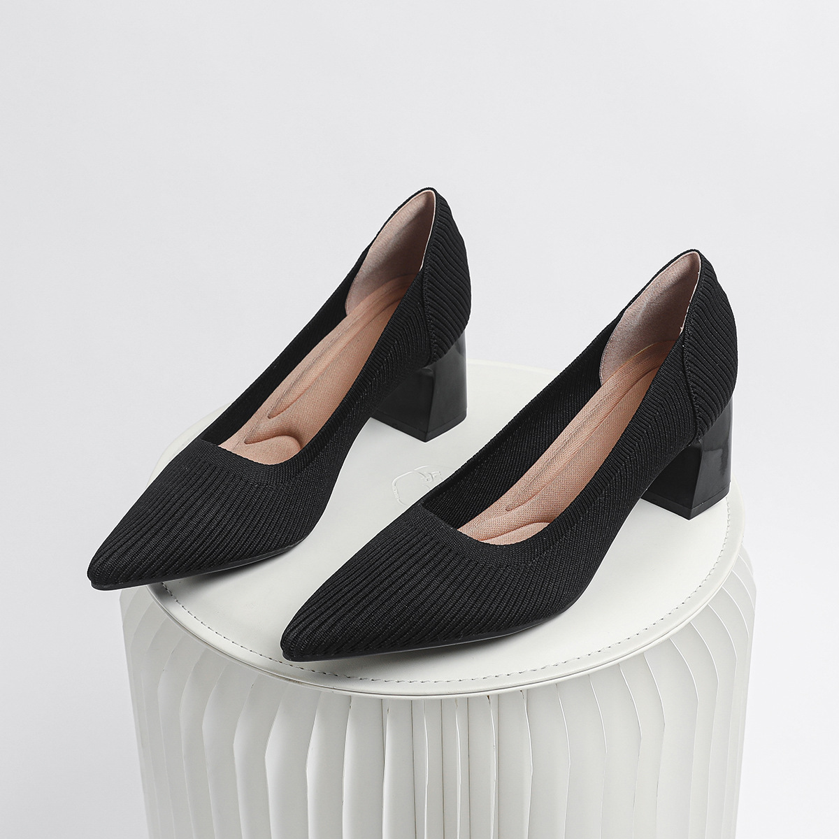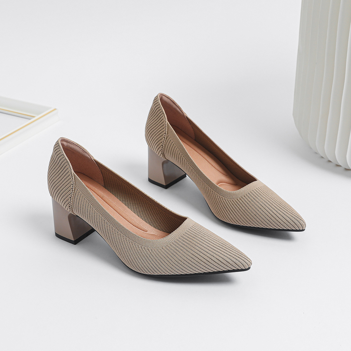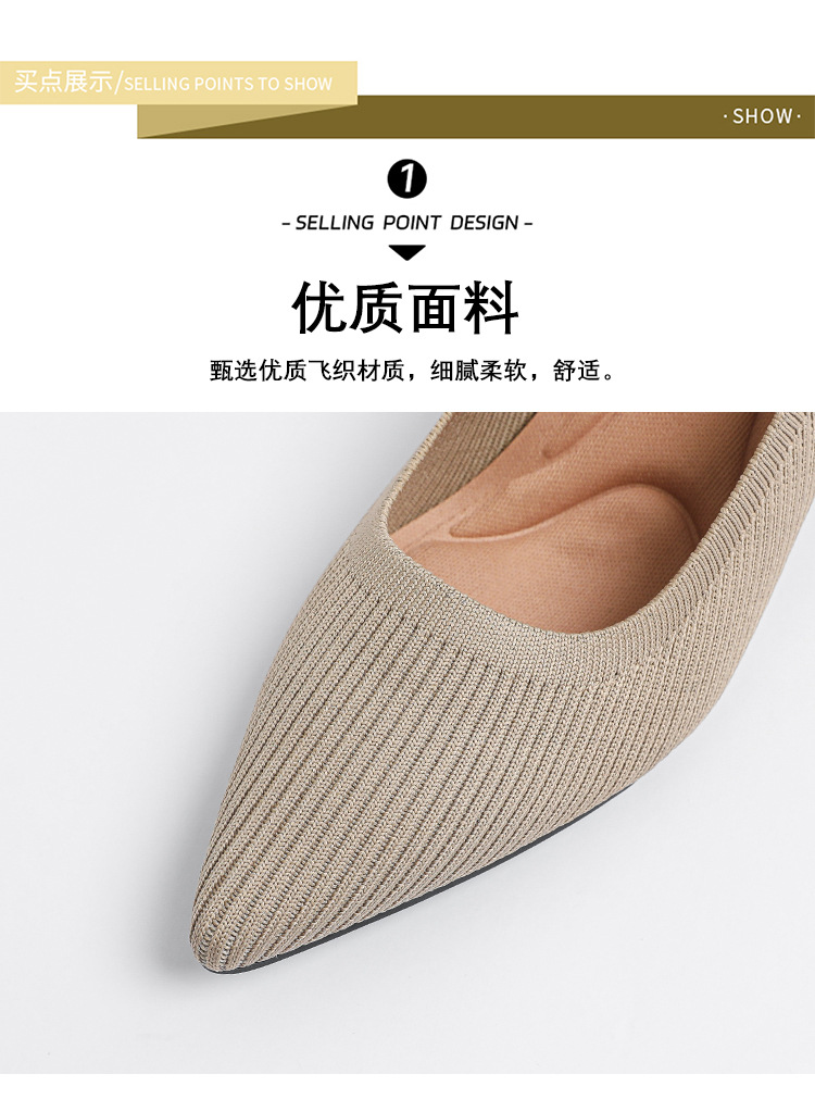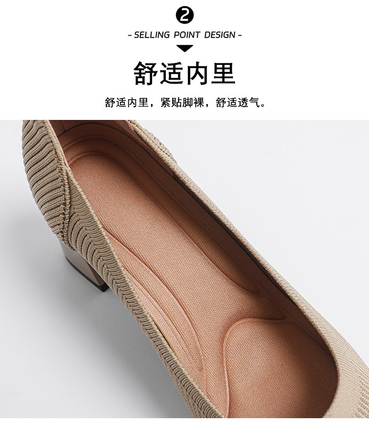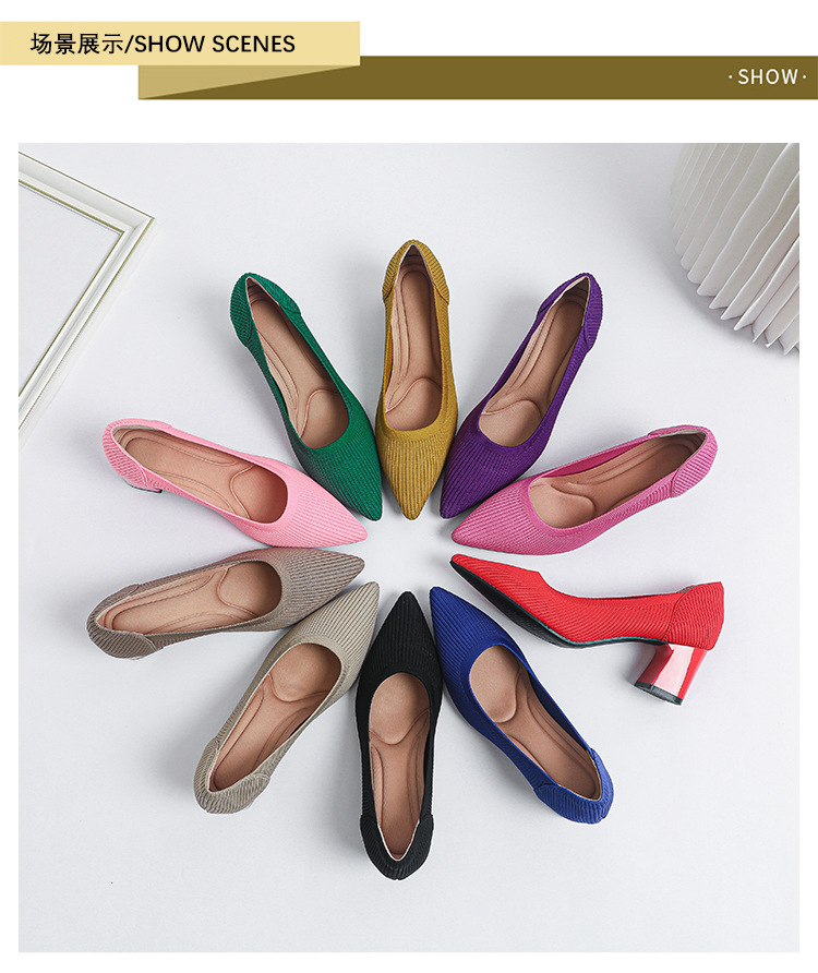 하이힐 스트레이트 패턴 슈즈, 패셔너블한 뾰족코 플라이 니트 슈즈, 얕은 굽의 두꺼운 굽 패션 슈즈, 여성스러운 하이힐 트렌드