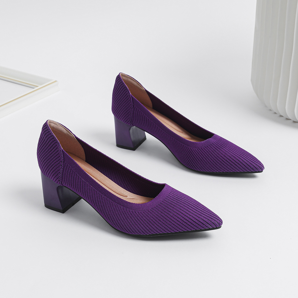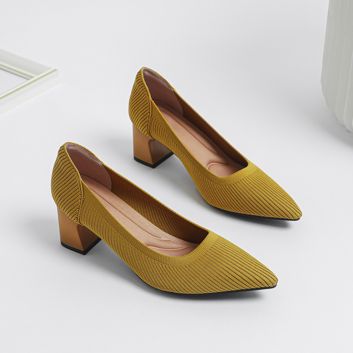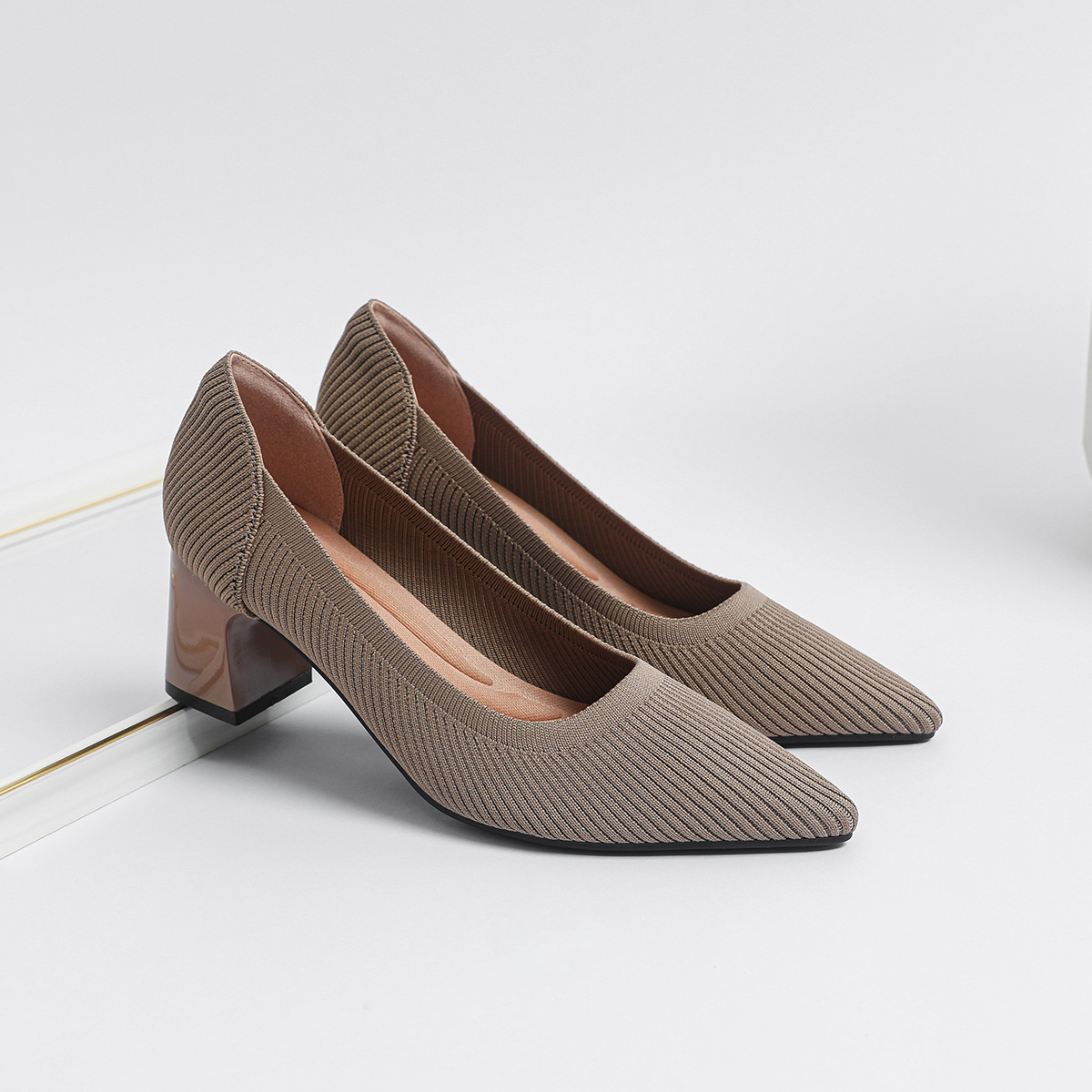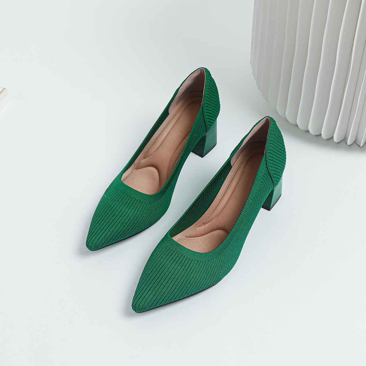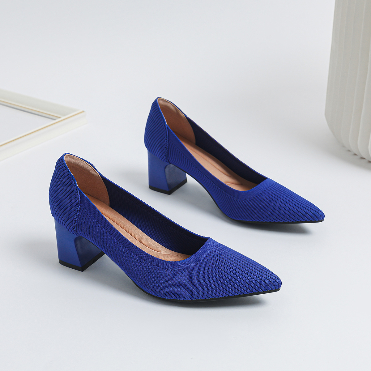 하이힐 스트레이트 패턴 슈즈, 패셔너블한 뾰족코 플라이 니트 슈즈, 얕은 굽의 두꺼운 굽 패션 슈즈, 여성스러운 하이힐 트렌드