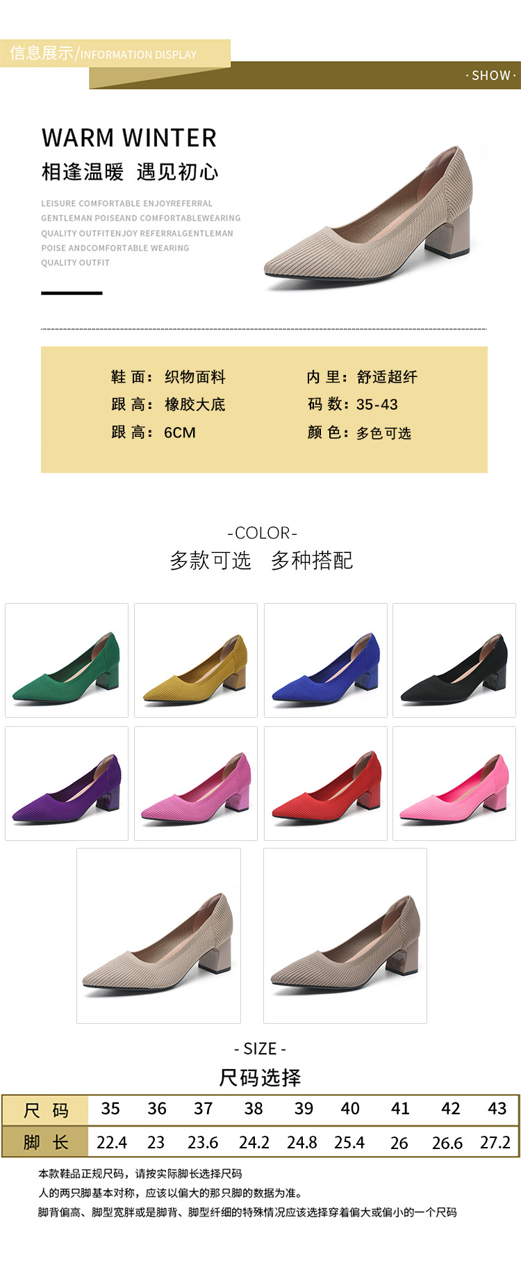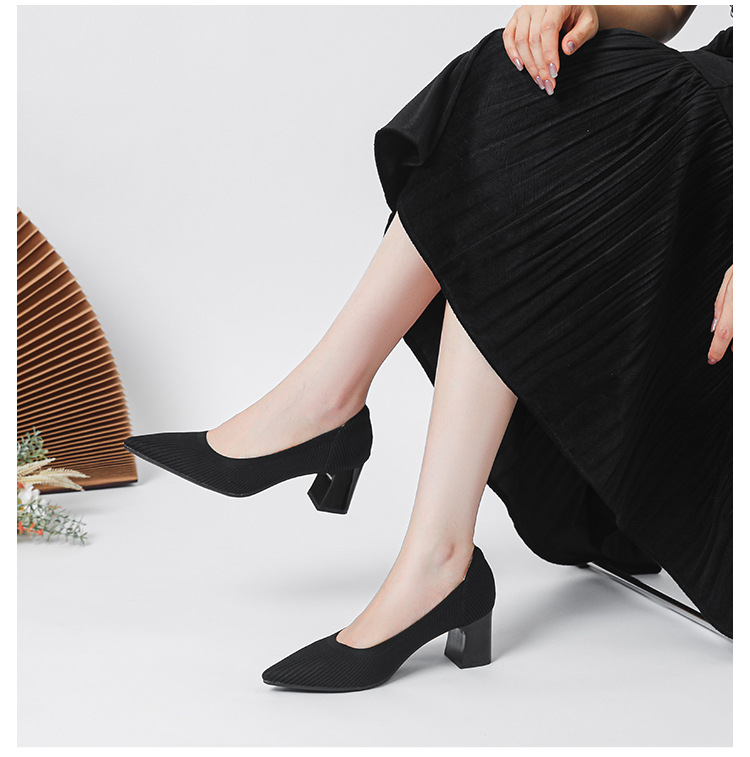 하이힐 스트레이트 패턴 슈즈, 패셔너블한 뾰족코 플라이 니트 슈즈, 얕은 굽의 두꺼운 굽 패션 슈즈, 여성스러운 하이힐 트렌드스토어 가기