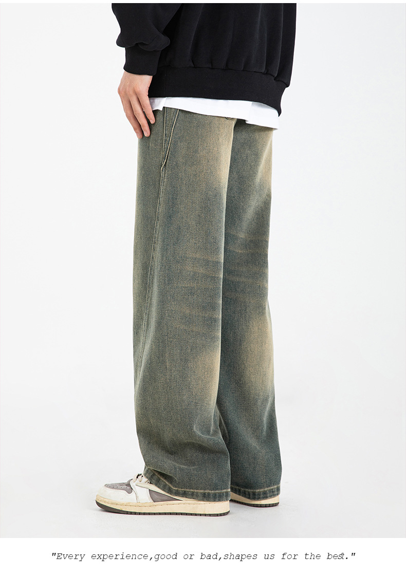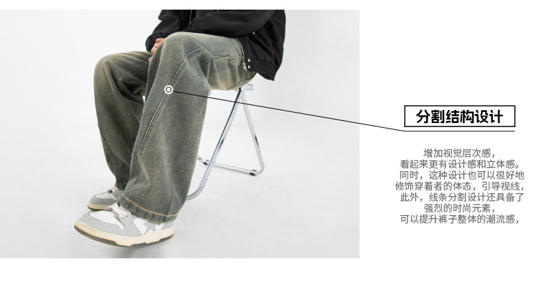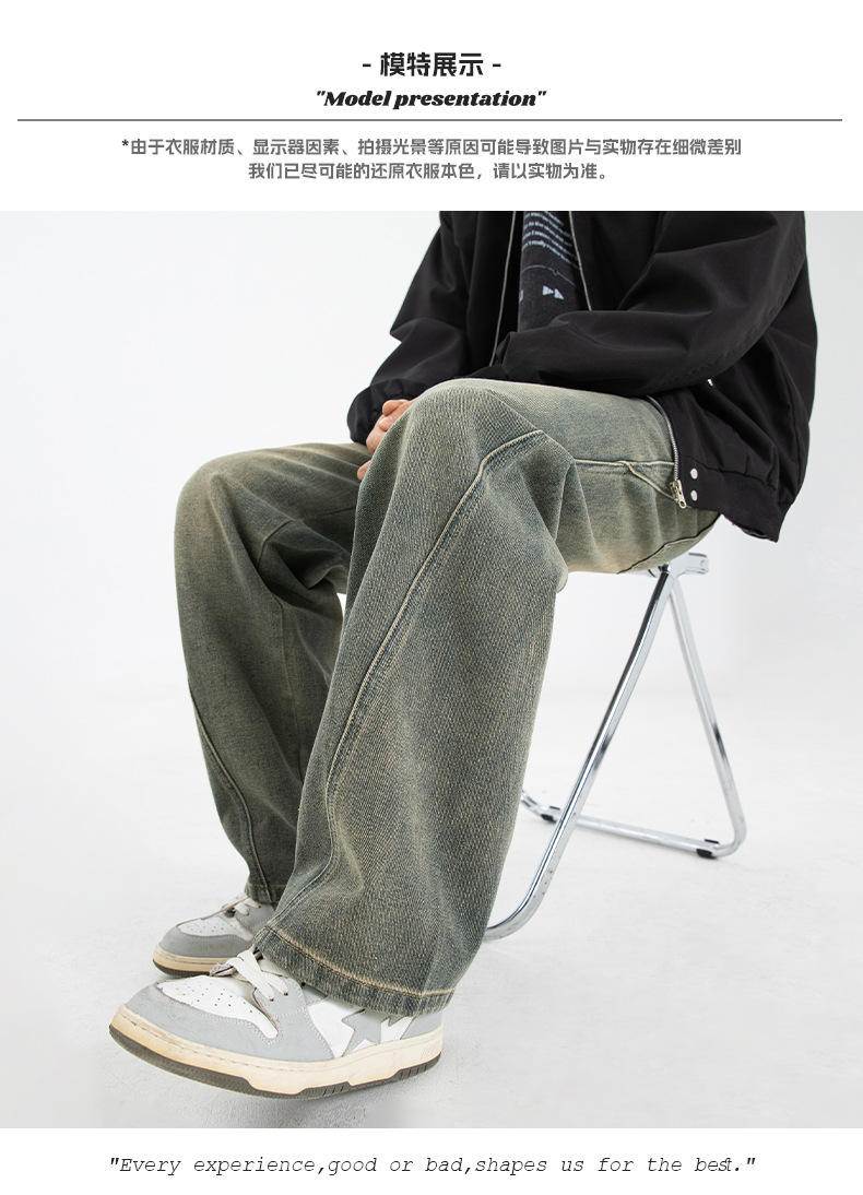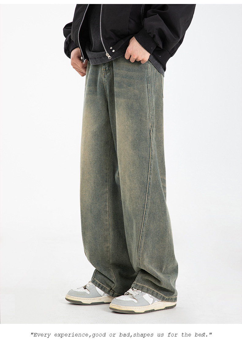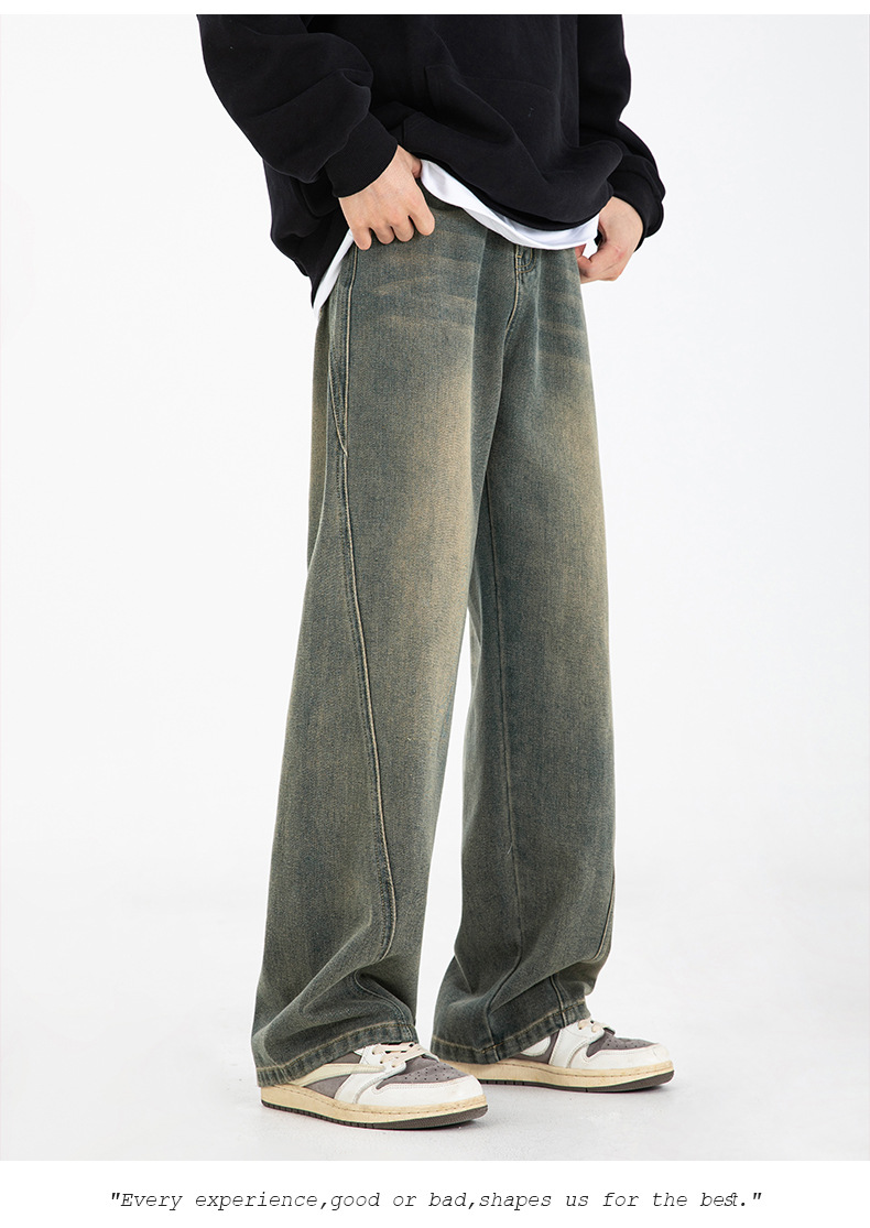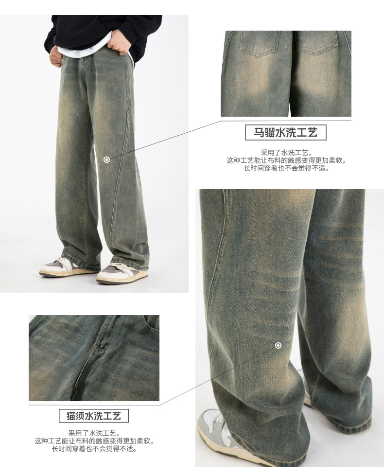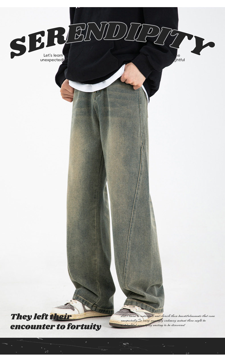 봄 남성용 스플릿 디자인 디스트레스드 워싱 청바지, 아메리칸 트렌디 브랜드 루즈 레트로 슬림 마이크로 와이드 롱 팬츠스토어 가기