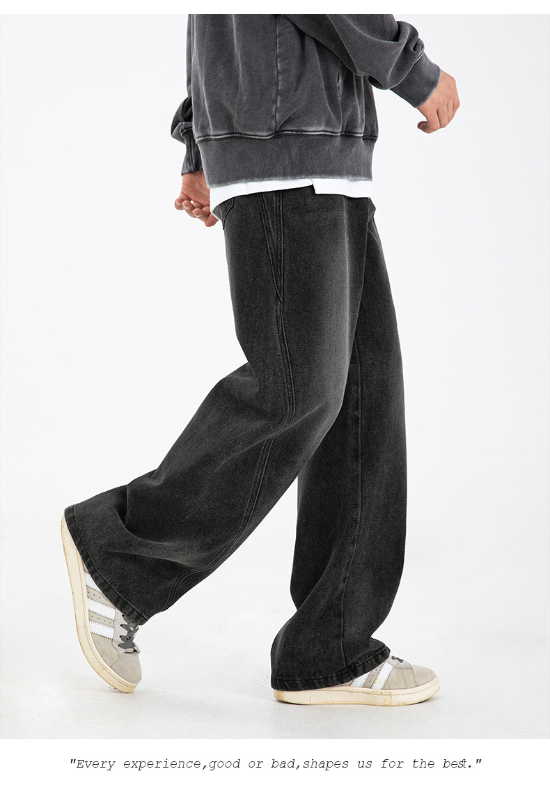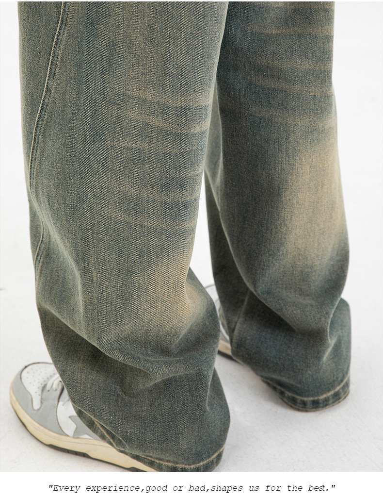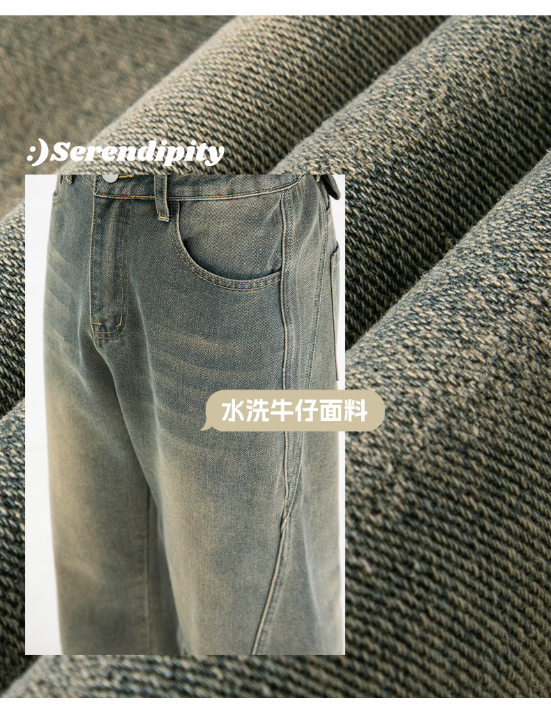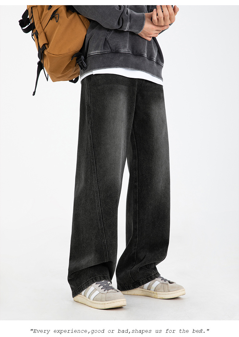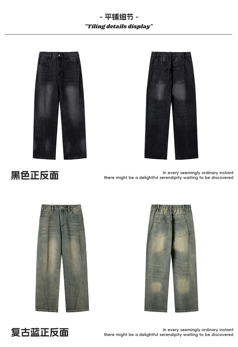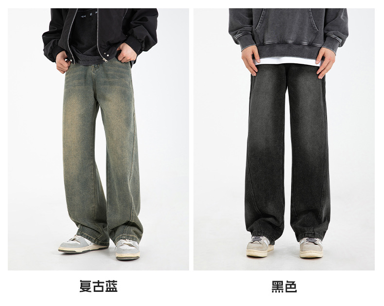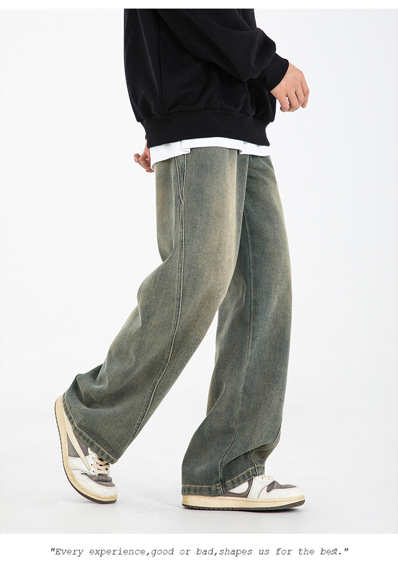 봄 남성용 스플릿 디자인 디스트레스드 워싱 청바지, 아메리칸 트렌디 브랜드 루즈 레트로 슬림 마이크로 와이드 롱 팬츠스토어 가기