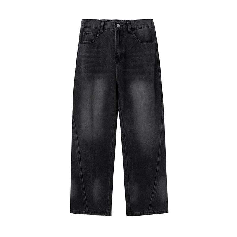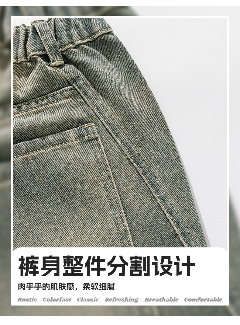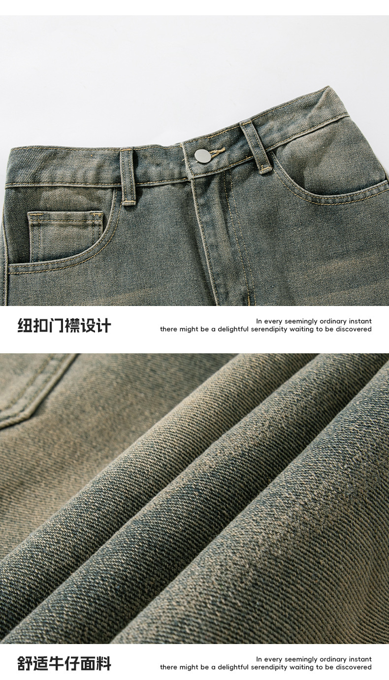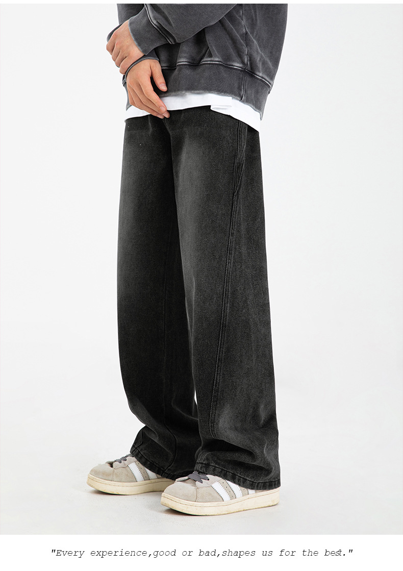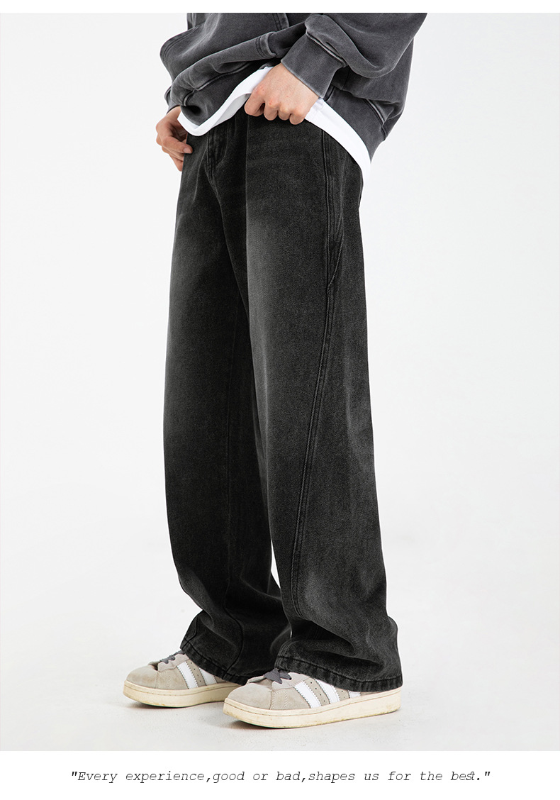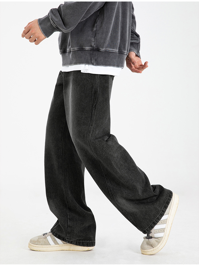 봄 남성용 스플릿 디자인 디스트레스드 워싱 청바지, 아메리칸 트렌디 브랜드 루즈 레트로 슬림 마이크로 와이드 롱 팬츠스토어 가기