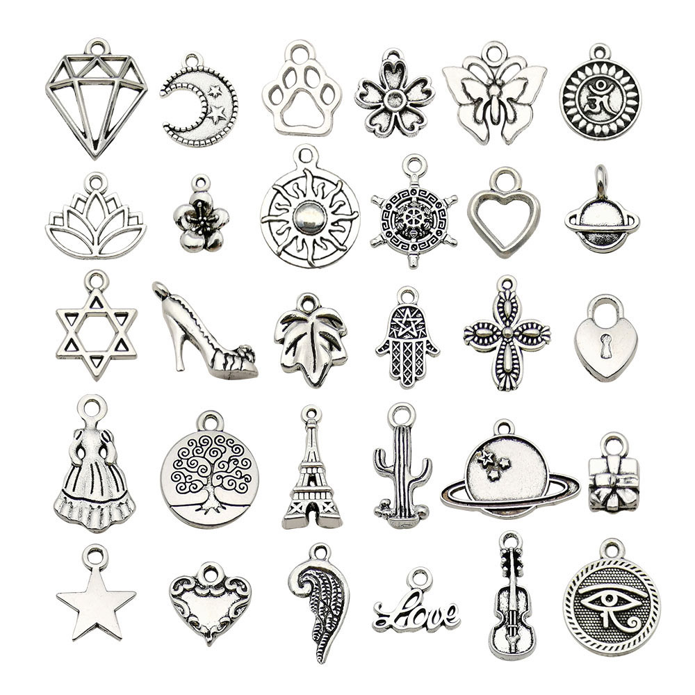 1 새로운 고대 실버 합금 시뮬레이션 사랑 다섯개 별 날개 시리즈 diy 팔찌 펜던트 목걸이 액세서리스토어 가기