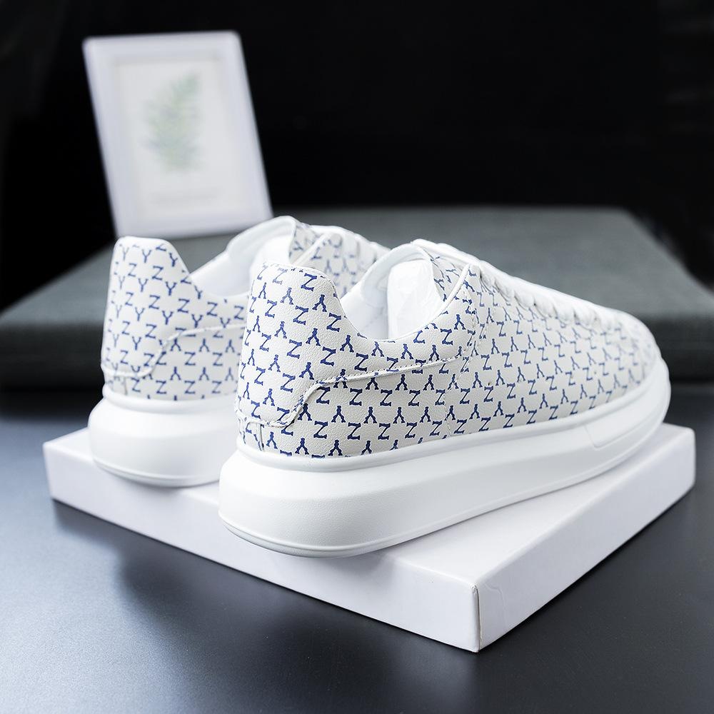 트렌디 한 인쇄 된 흰색 신발 남성과 여성의 2024 새로운 두꺼운 밑창 커플 로우 탑 보드 신발 올매치 경량 캐주얼 운동화스토어 가기