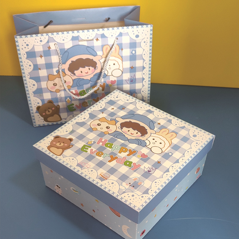 • 파란색 만화(선물 상자 + 선물 가방), 흰색 카드, 20x20x10cm