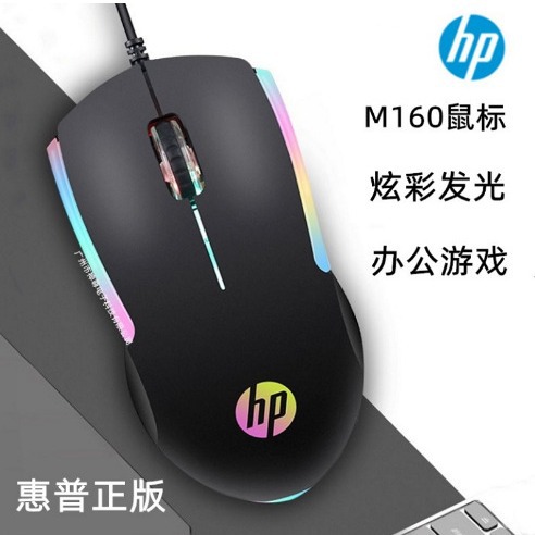 HP HPM160 유선 마우스 게임 RGB 빛나는 마우스 데스크탑 노트북 사무실 USB 마우스