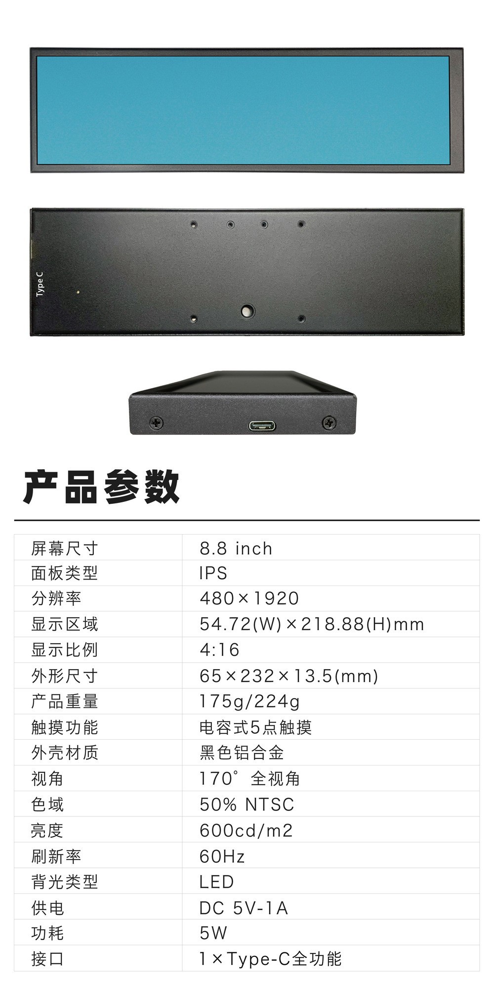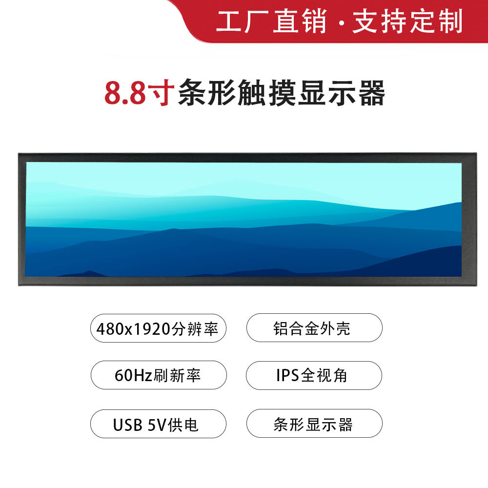 맞춤형 롱 바 디스플레이 8.8 인치 섀시 온도 모니터링 컴퓨터 서브 스크린 휴대용 HDMI HD 소스 제조업체