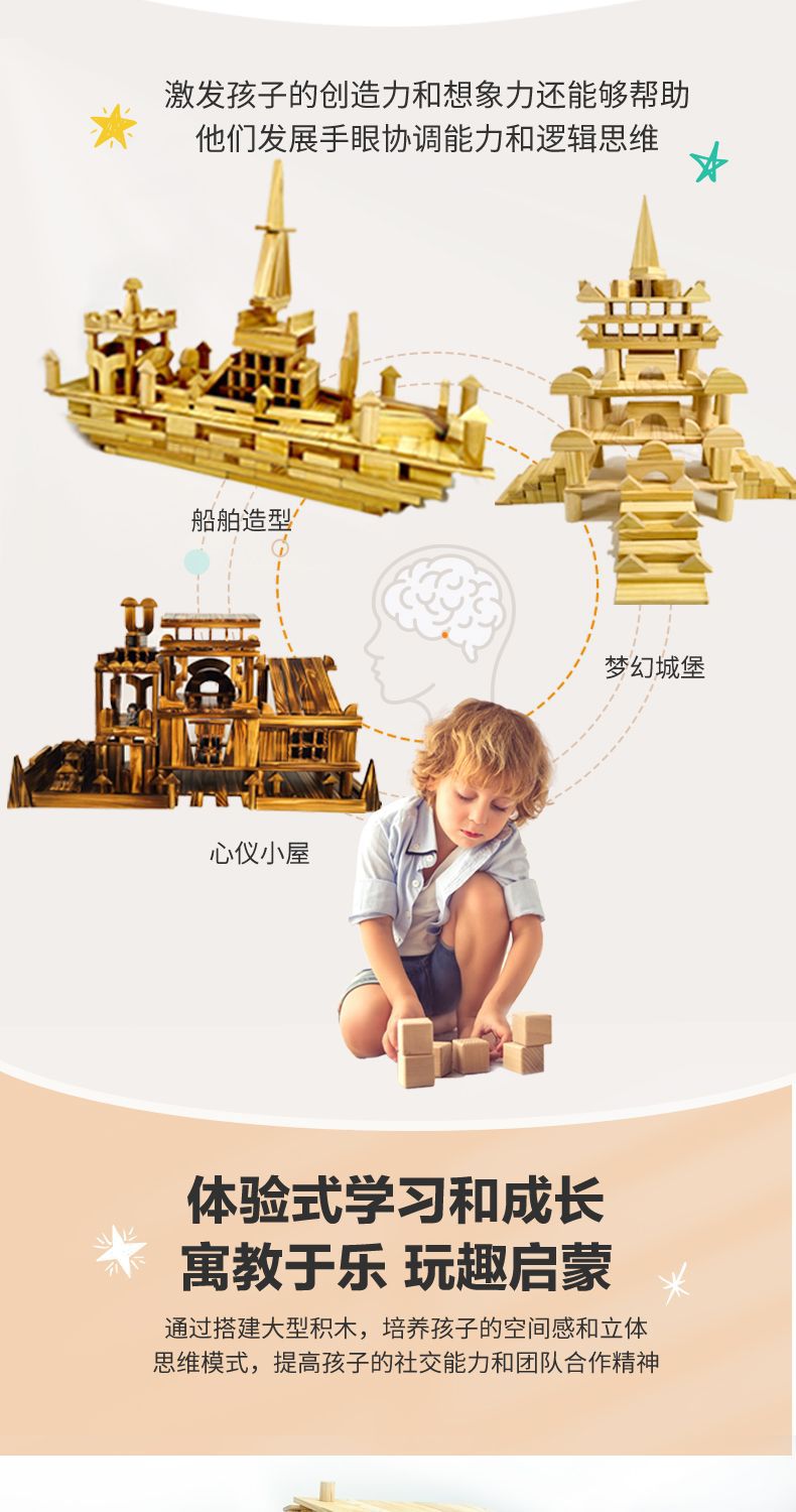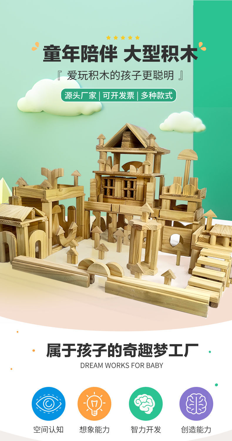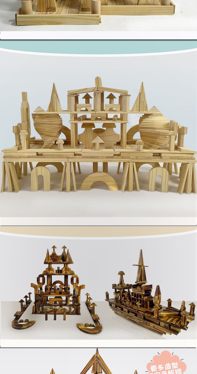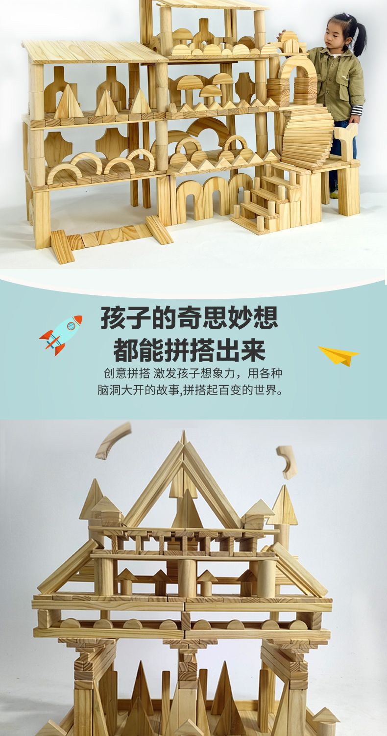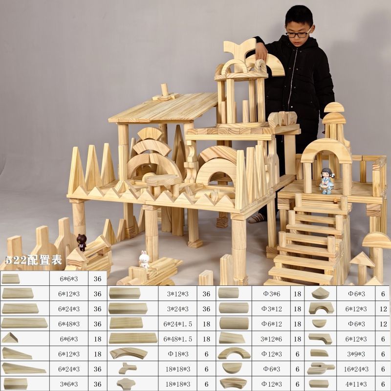 유치원 건물 블록 대형 건물 장난감 실내 및 실외 맑은 물 원래 색상 목조 건물 블록 단단한 로그 빌딩 블록스토어 가기