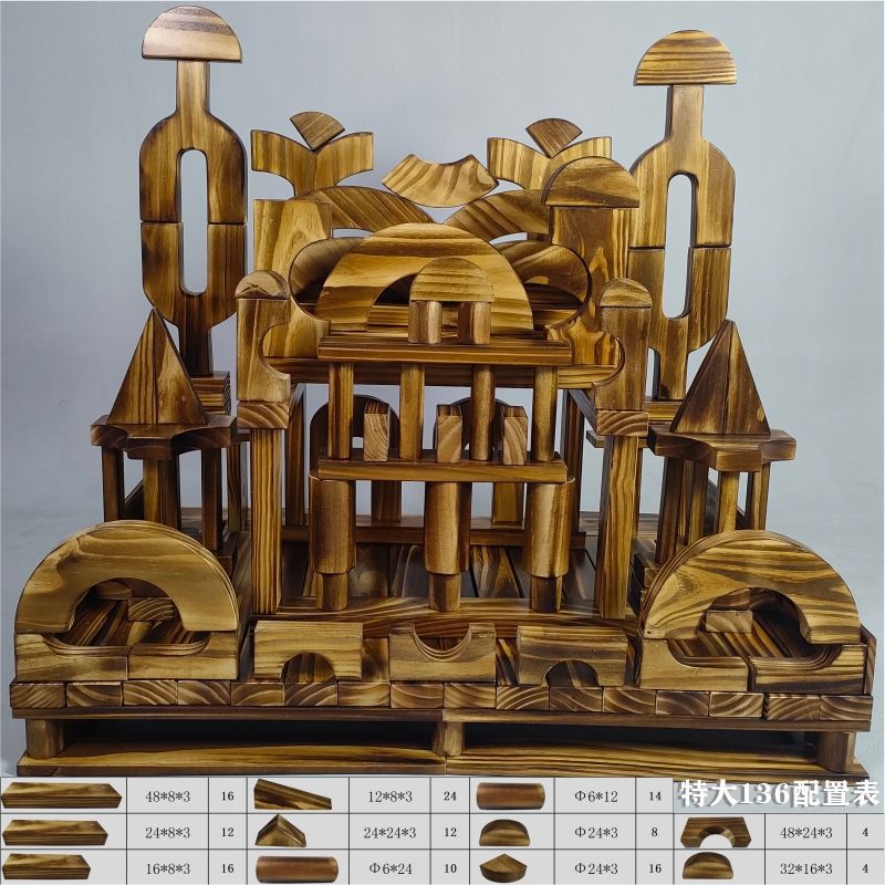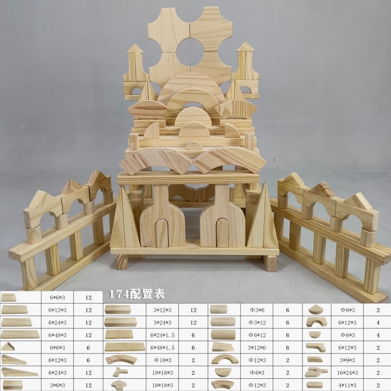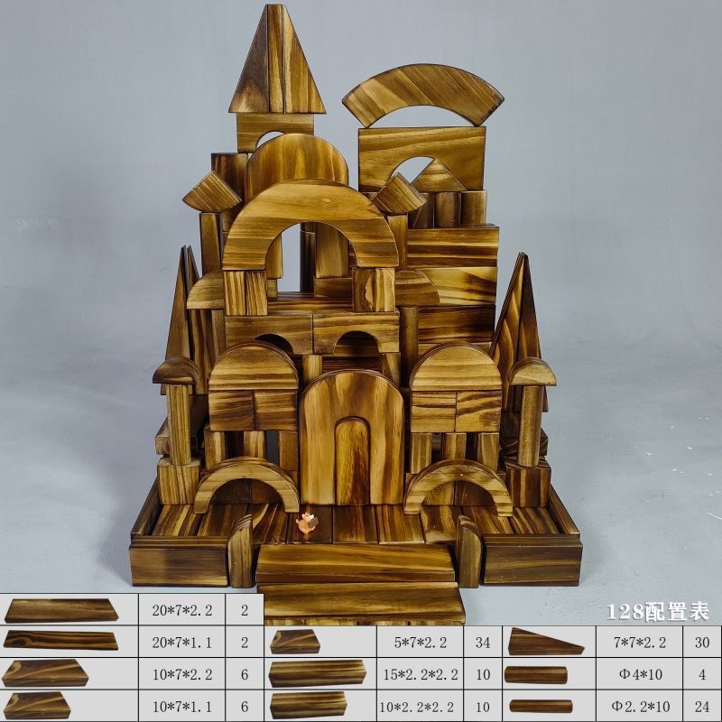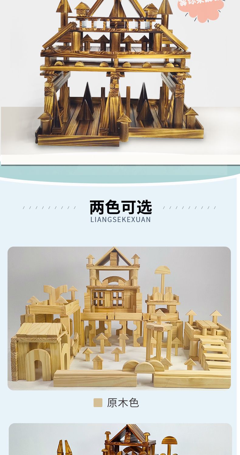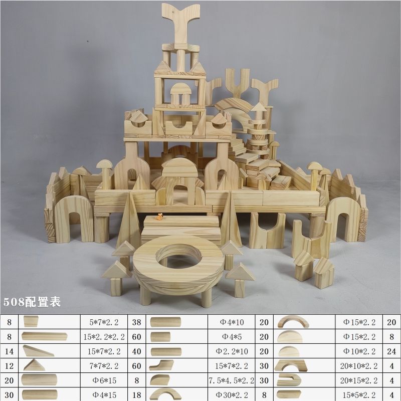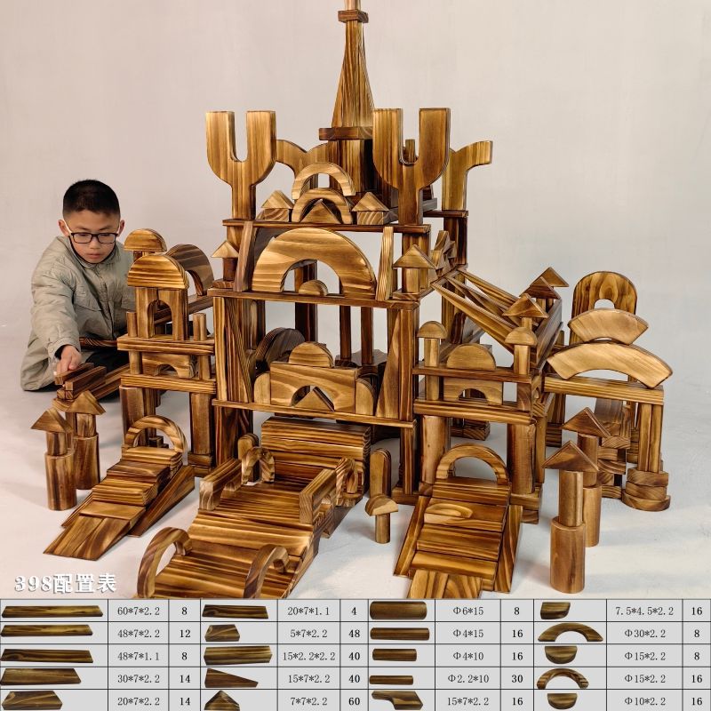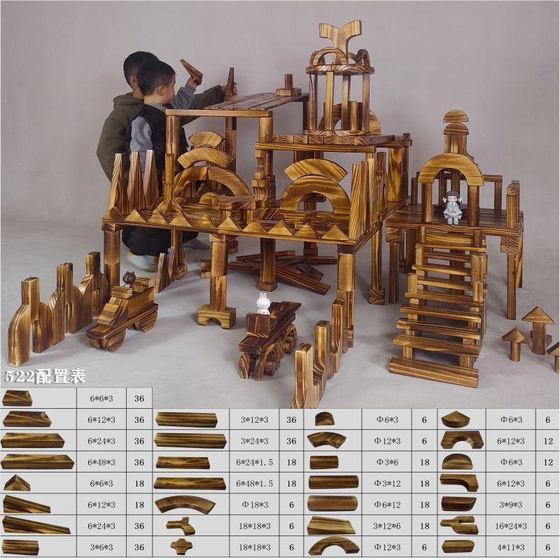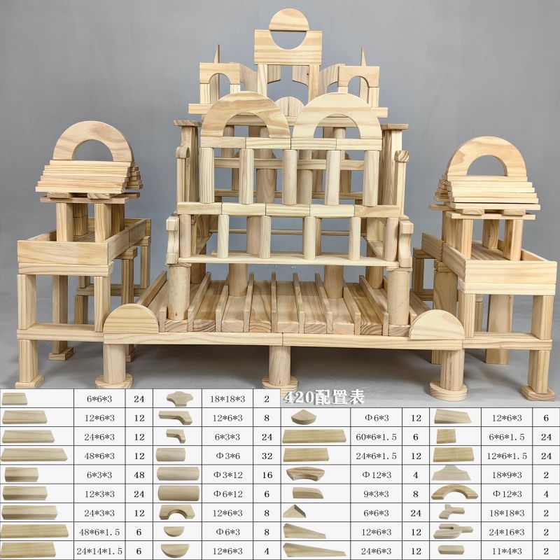 유치원 건물 블록 대형 건물 장난감 실내 및 실외 맑은 물 원래 색상 목조 건물 블록 단단한 로그 빌딩 블록