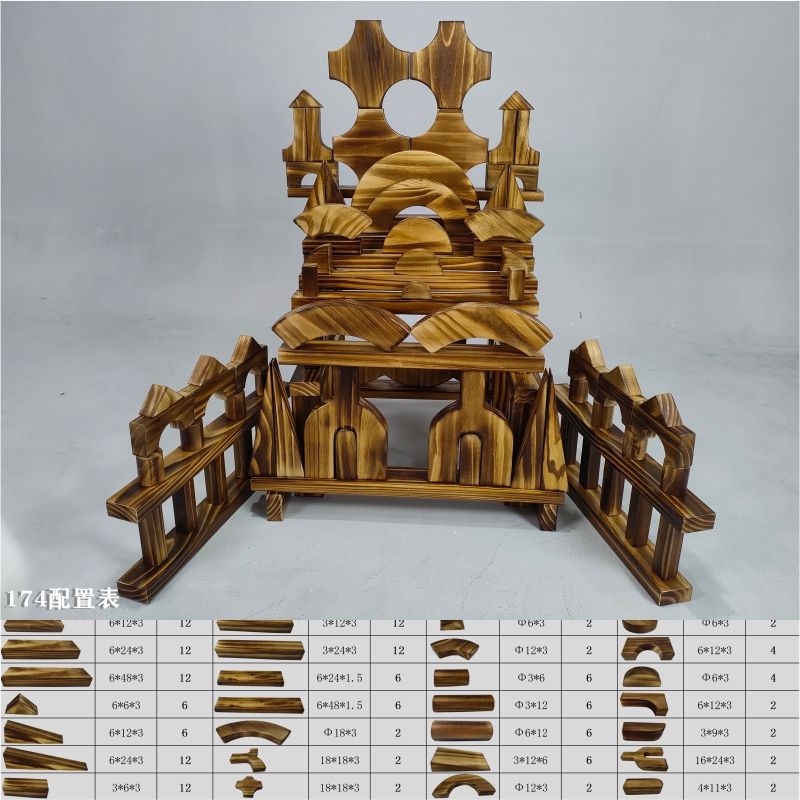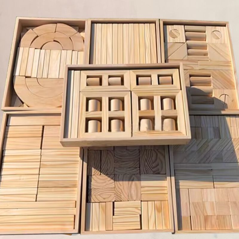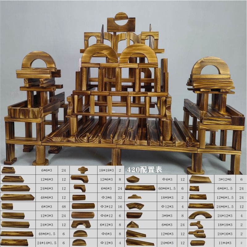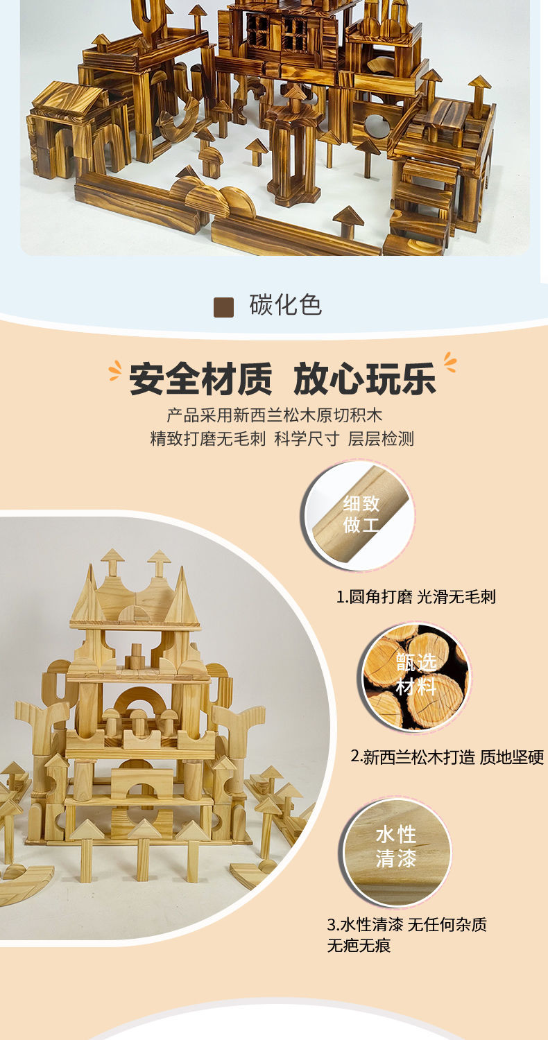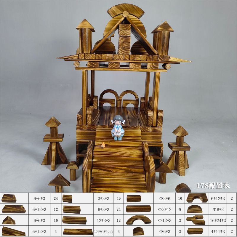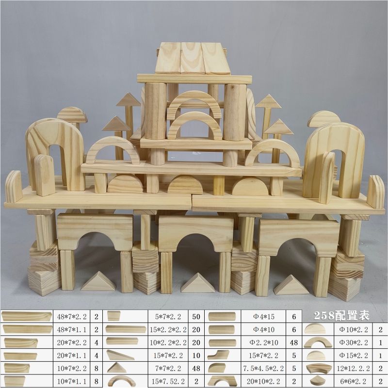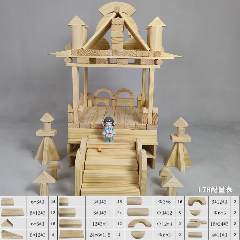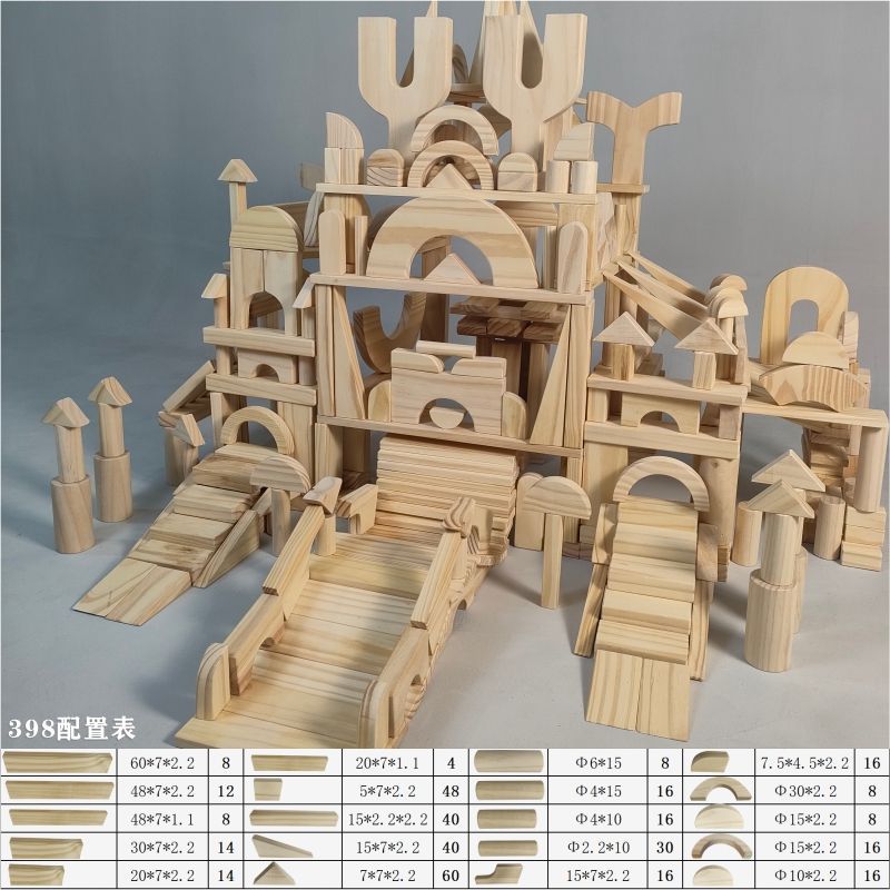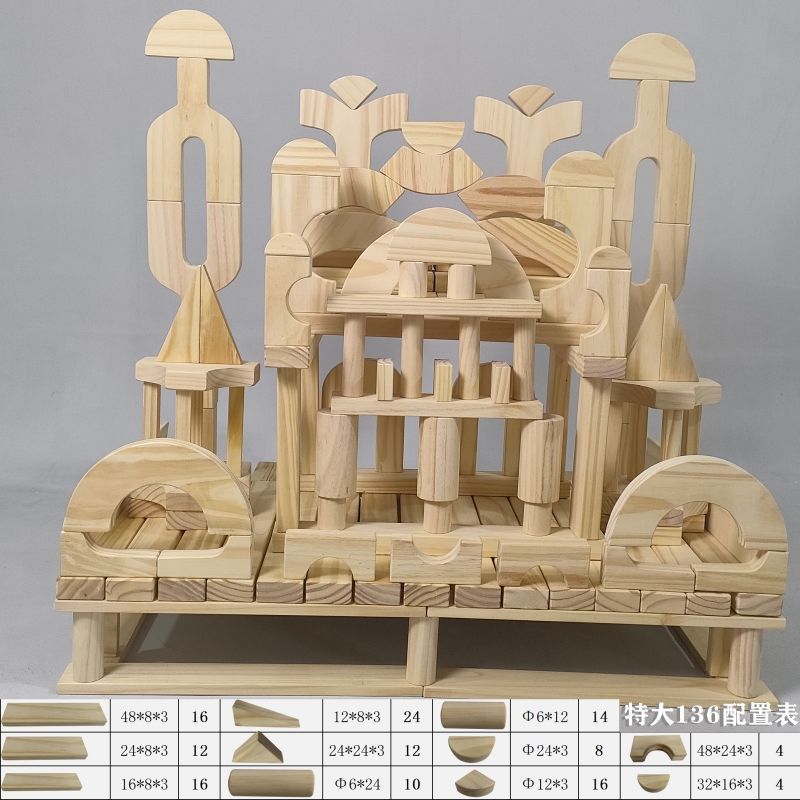 유치원 건물 블록 대형 건물 장난감 실내 및 실외 맑은 물 원래 색상 목조 건물 블록 단단한 로그 빌딩 블록