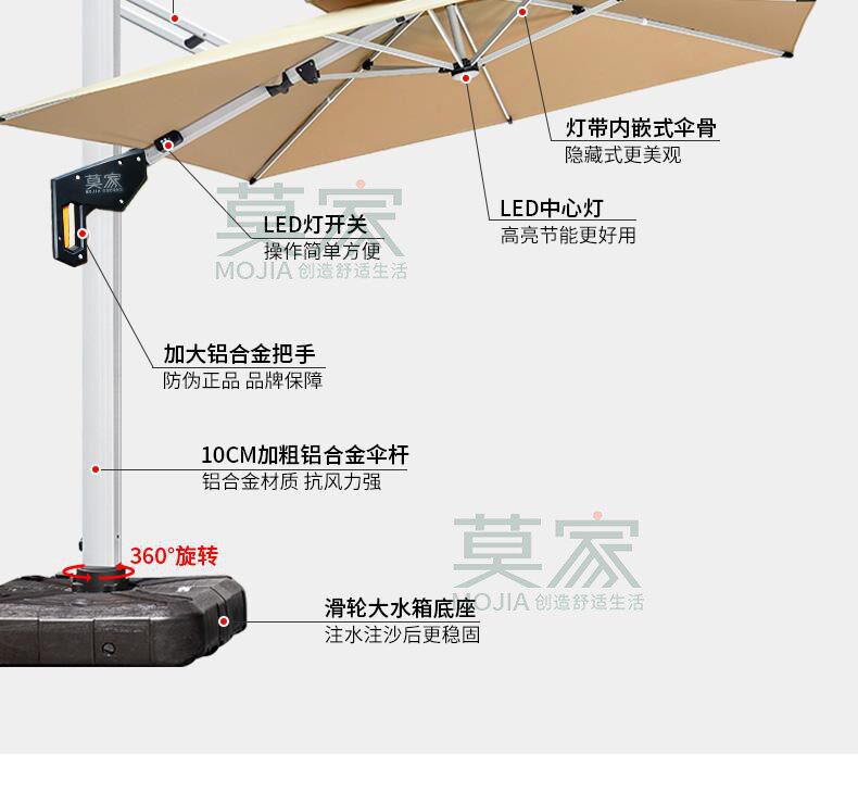 • 금박 나뭇결 모델: 이중 붐 + 8CM 알루미늄 기둥 + 고급 바퀴 달린 물 탱크 베이스